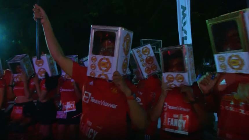 ดรามา งานวิ่งแดงเดือด แฟนหงส์แซะแรง ใส่เสื้อปลอมทีมผี-เอาปี๊บคลุมหัว