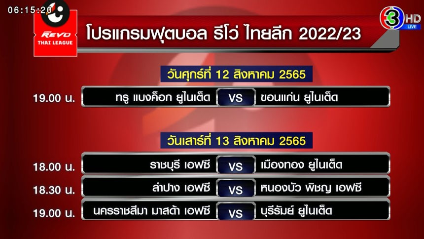 โปรแกรมรีโว่ไทยลีก มีดังนี้ :