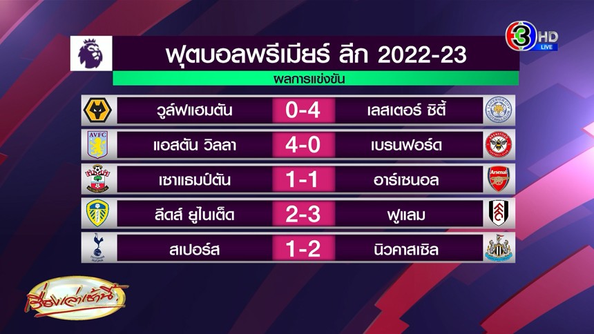 ผลการแข่งขันฟุตบอลพรีเมียร์ลีก อังกฤษ คู่อื่น มีดังนี้