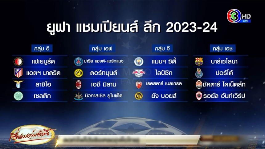 วานนี้ (31 ส.ค. 66) มีการจับสลากแบ่งสายฟุตบอล ยูฟ่า แชมเปี้ยนส์ลีก ฤดูกาล 2023-2024 ที่โมนาโก โดยผลออกมาดังนี้