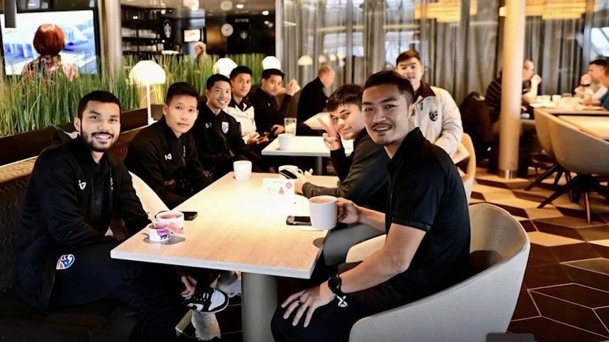 โดยระบุว่า "เดินทางปลอดภัยนะทุกคน! แข้งช้างศึก อยู่ระหว่างนั่งเรือ จาก เอสโตเนีย ไปยัง ฟินแลนด์ เพื่อต่อเครื่องกลับกรุงเทพฯ ต่อไป โดยตั๋วนั่งเรือเป็นแบบ Business Lounge มีความสะดวก สบาย และเพียบพร้อมไปด้วยอาหารและสิ่งอำนวยความสะดวก #ทีมแอดมินมาดามแป้ง #บอลไทย #ทีมชาติไทย #ช้างศึก"