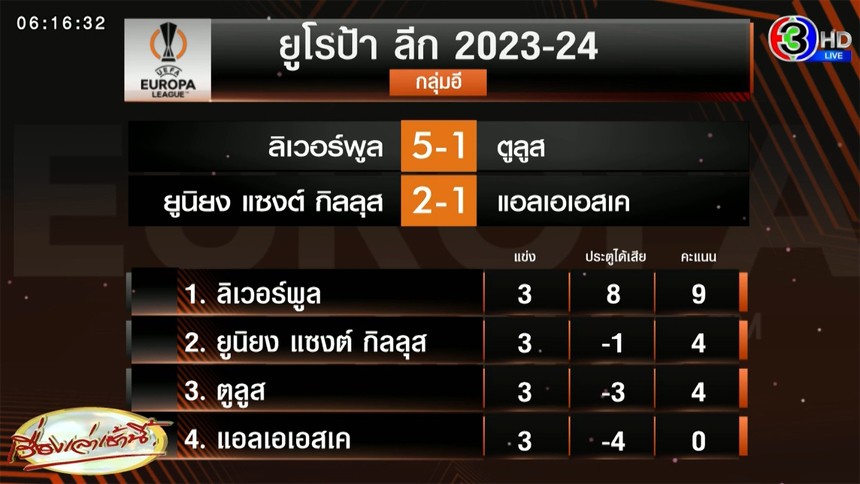 การแข่งขันฟุตบอลยูฟ่า ยูโรปา ลีก ฤดูกาล 2023-24 รอบแบ่งกลุ่ม กลุ่มอี เมื่อคืนวันพฤหัสบดีที่ 26 ต.ค. 66 "หงส์แดง" ลิเวอร์พูล ที่ชนะมา 2 นัดติดในรายการนี้ เปิดสนามแอนฟิลด์ รับการมาเยือนของ ตูลูส จากฝรั่งเศส