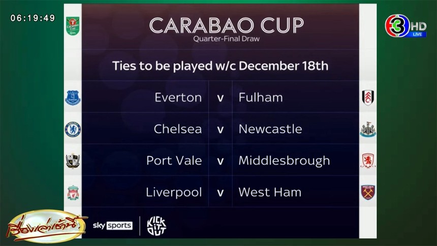 ‘เชลซี’ ร้องซี๊ด! จับติ้วชน ‘นิวคาสเซิล’ ด้าน ‘ลิเวอร์พูล’ ดวล ‘เวสต์แฮม’ รอบ 8 ทีม คาราบาวคัพ