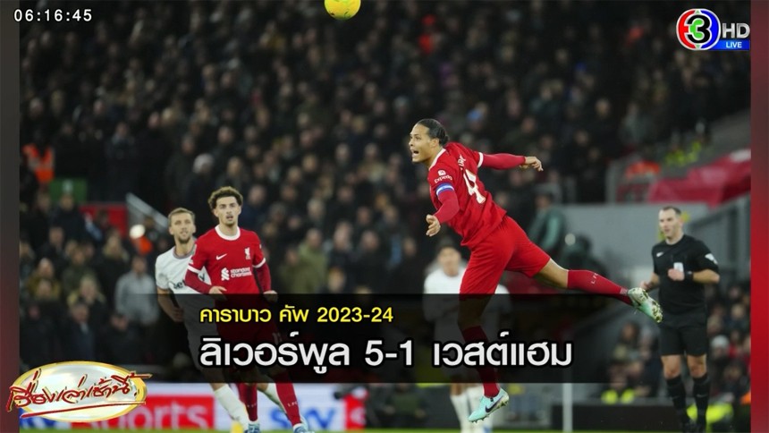การแข่งขันฟุตบอล คาราบาว คัพ อังกฤษ ฤดูกาล 2023-24 รอบ 8 ทีมสุดท้าย ประจำวันพุธที่ 20 ธ.ค. 66 ซึ่ง "หงส์แดง" ลิเวอร์พูล เปิดสนามแอนฟิลด์ รับการมาเยือนของ "ขุนค้อน" เวสต์แฮม ยูไนเต็ด