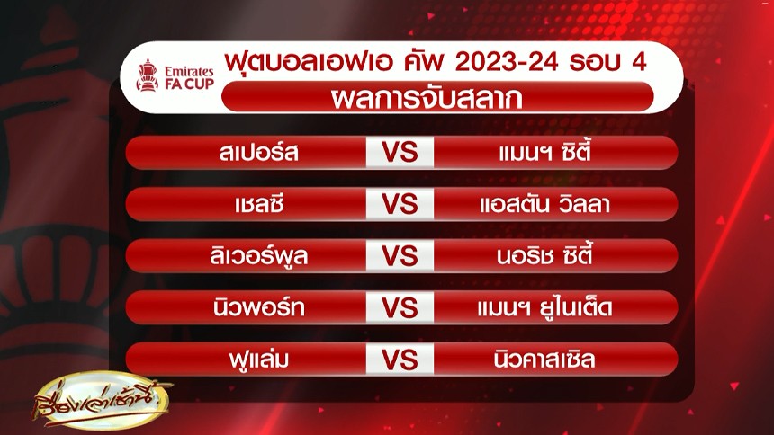สำหรับ ฟุตบอลเอฟเอ คัพ อังกฤษ ฤดูกาล 2023-24 รอบ 4 จะแข่งขันกันในช่วงสุดสัปดาห์ของวันที่ 27 มกราคมนี้