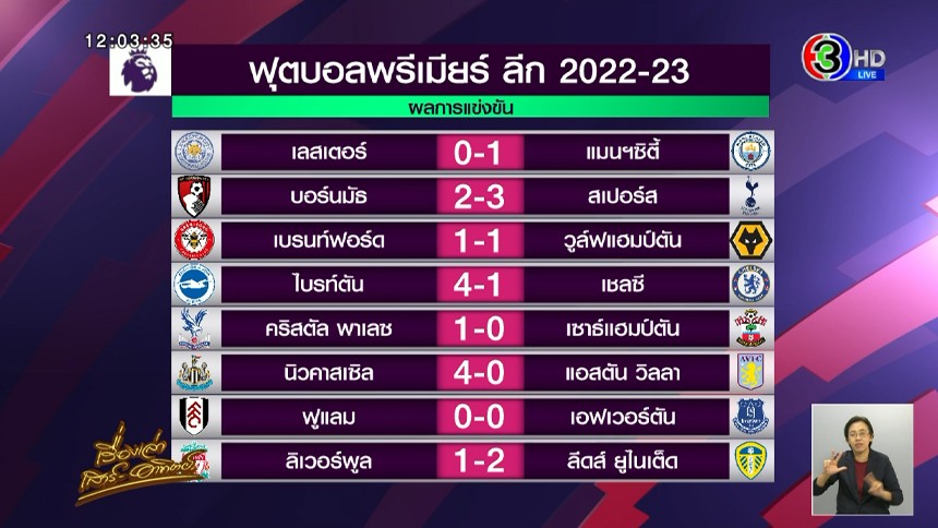 ส่วน บอร์นมัธ พ่ายให้กับ สเปอร์ส ไป 2-3 ส่วนคู่ของ ลิเวอร์พูล แพ้ ลีดส์ ยูไนเต็ด ไป 1-2