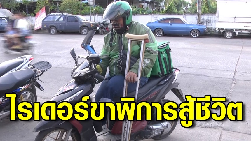 ไรเดอร์ขาพิการสู้ชีวิต ขี่จยย.พร้อมไม้เท้าค้ำยันคู่ใจส่งอาหาร หาเลี้ยงชีพ