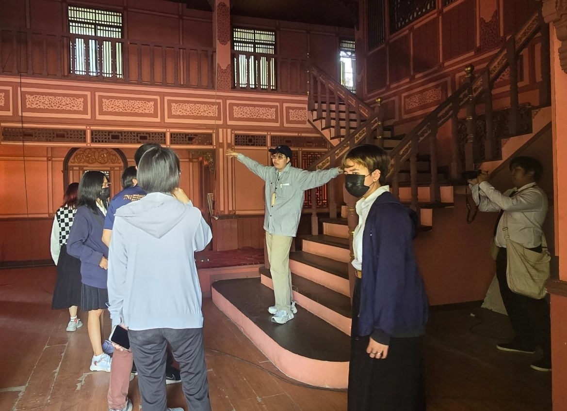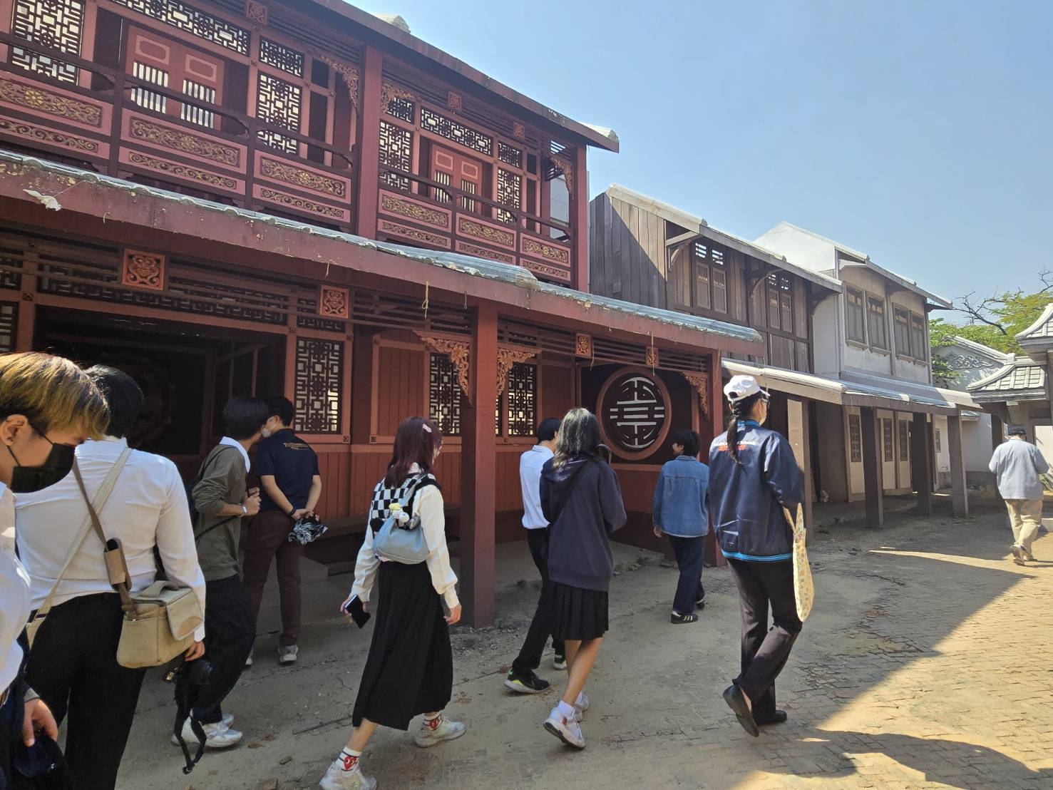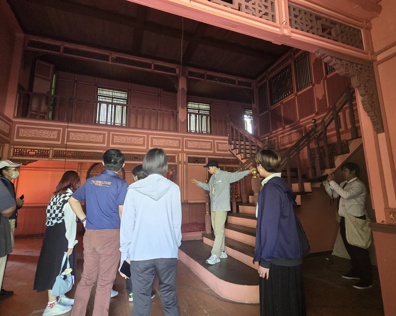 ประเดิมเริ่มต้นด้วยการพาชมบริเวณสถานที่ต่างๆ โดยทีมเจ้าหน้าที่ศิลปกรรม ภายในอาณาบริเวณสถานีหนองแขม ทั้งในส่วนของกลุ่มอาคารสถาปัตยกรรมรูปแบบต่างๆ เรือนไทย ศาลเจ้า ตลาด หมู่บ้านกระท่อม ซุ้มโจร ฯลฯ รวมทั้งแลนด์มาร์คสำคัญอย่างวังจุฑาเทพ ที่ใช้ในการถ่ายทำละครของช่อง 3 ก่อนจะถึงจุดไฮไลท์อย่าง “โรงแม่แฟง” และ “ตรอกเต๊า” สถานที่หลักของการถ่ายทำละครคุณพี่เจ้าขา ดิฉันเป็นห่านมิใช่หงส์ ที่ผ่านการออกแบบและจัดสร้างตามสไตล์ศิลปะแบบจีน ให้ความรู้สึกและกลิ่นไอของโรงหญิงคณิกาในสมัยนั้น ซึ่งได้รับความสนใจจากคณะนักศึกษาเป็นพิเศษ พร้อมกันนี้เจ้าหน้าที่ของสถานีฯ ได้ร่วมบรรยายเสริมข้อมูลเนื้อหาของละครที่นำมาเป็นต้นแบบในการจัดสร้างฉาก ตลอดจนเทคนิคต่างๆที่ใช้ในการผลิตชิ้นงาน การให้สี การเก็บรายละเอียดต่างๆ เพื่อความสมจริงและถูกต้องตามบทประพันธ์