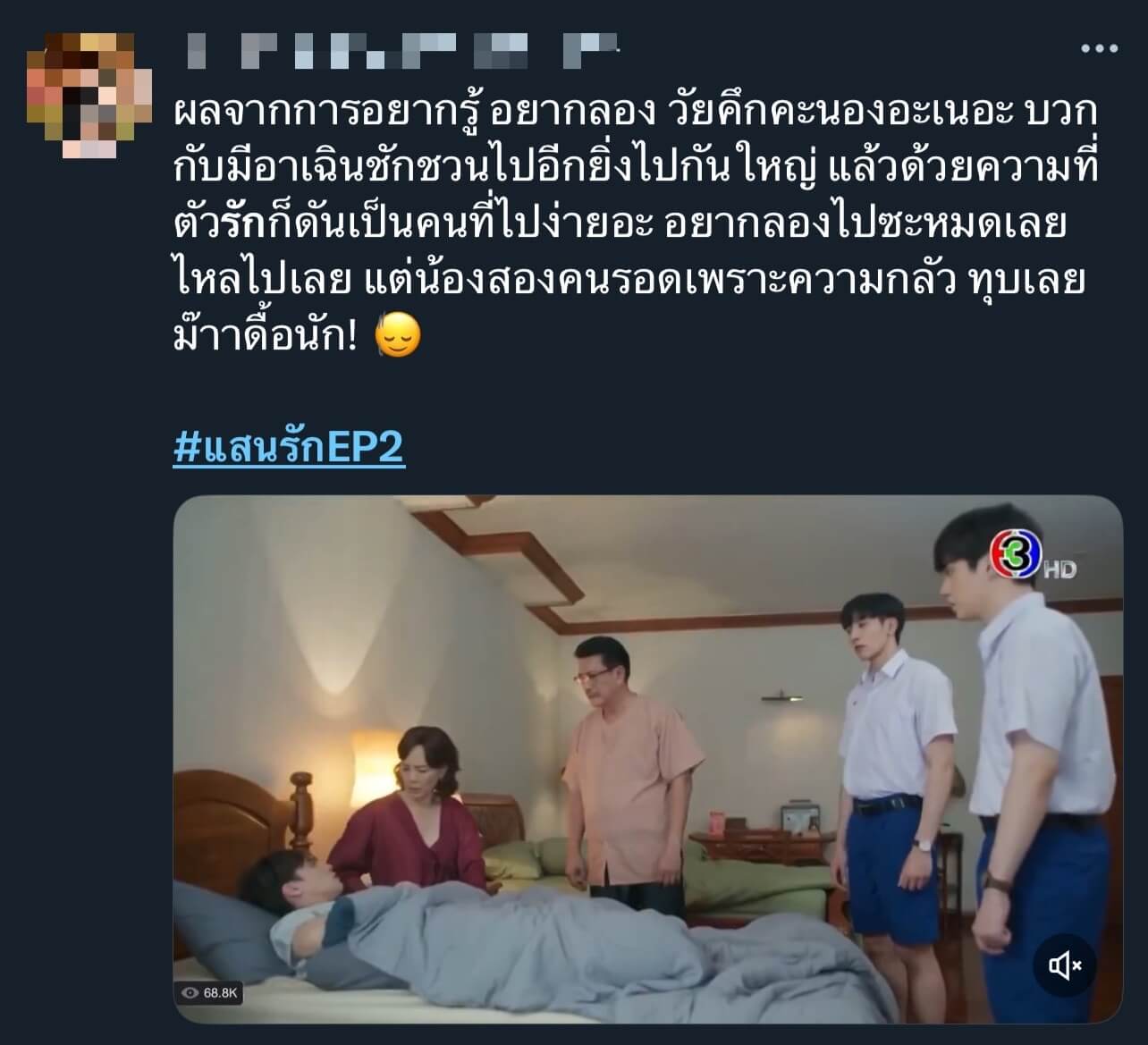 หลังจากนี้จะเปิดประเด็นอะไรออกมาให้ได้ตื่นเต้นกันอีกบ้าง ตั้งหน้าตั้งตารอไว้ได้เลยกับละครเรื่อง “แสนรัก” ทุกวันจันทร์ – อังคาร เวลา 20.30 น. ทางช่อง 3 ดูทีวีกด 33 ดูมือถือกด 3Plus