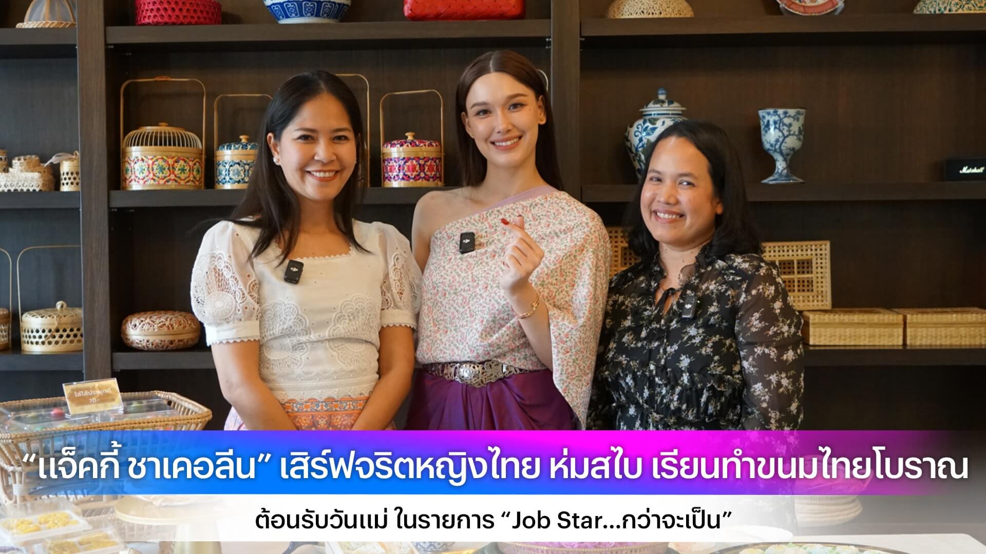 “แจ็คกี้ ชาเคอลีน” เสิร์ฟจริตหญิงไทย ห่มสไบ เรียนทำขนมไทยโบราณ ต้อนรับวันแม่ ในรายการ “Job Star…กว่าจะเป็น”