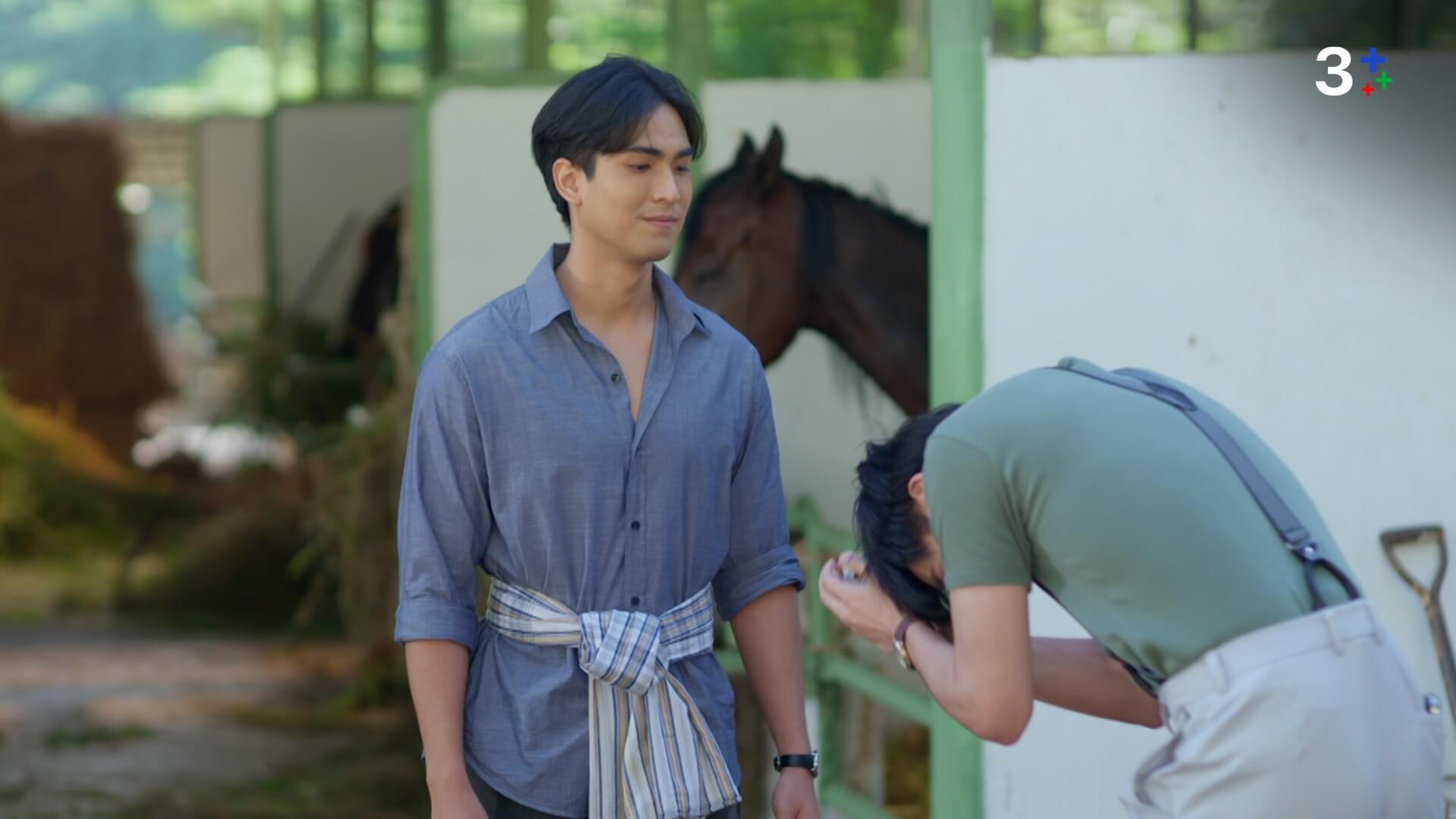 ฉากนี้ต้องยกสปิริตให้พีคที่แม้ว่ายังมีอาการบาดเจ็บกล้ามเนื้อหลังอยู่ แต่ก็ขอทุ่มทุน เรียนจริง ขี่จริงเพื่อให้ได้ความสนุกและอรรถรสที่สมจริง ซึ่งม้าทั้ง 3 ตัว รัศมี ปอร์เช่ ปทุม ก็คุ้นชินและเข้ากันได้ดีกับนักแสดงจนหลงเสน่ห์ของการขี่ม้าไปเลย งานนี้ พีค - พีพี - ภาม ถึงกับร้อนวิชา อยากขี่ม้าเอง ทำเอา