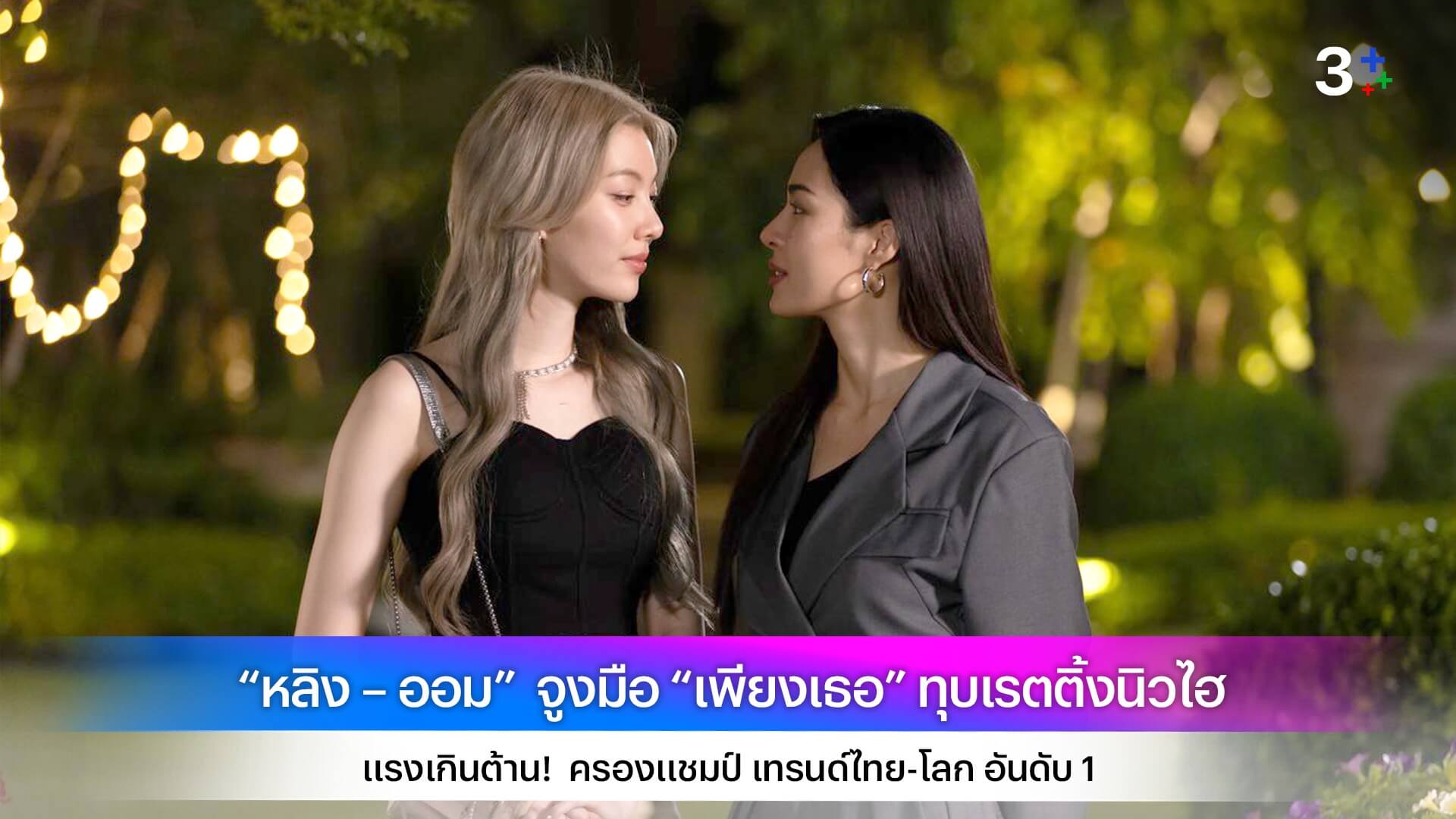 “หลิง – ออม” จูงมือ “เพียงเธอ” ทุบเรตติ้งนิวไฮ แรงเกินต้าน! ครองแชมป์ เทรนด์ไทย-โลก อันดับ 1