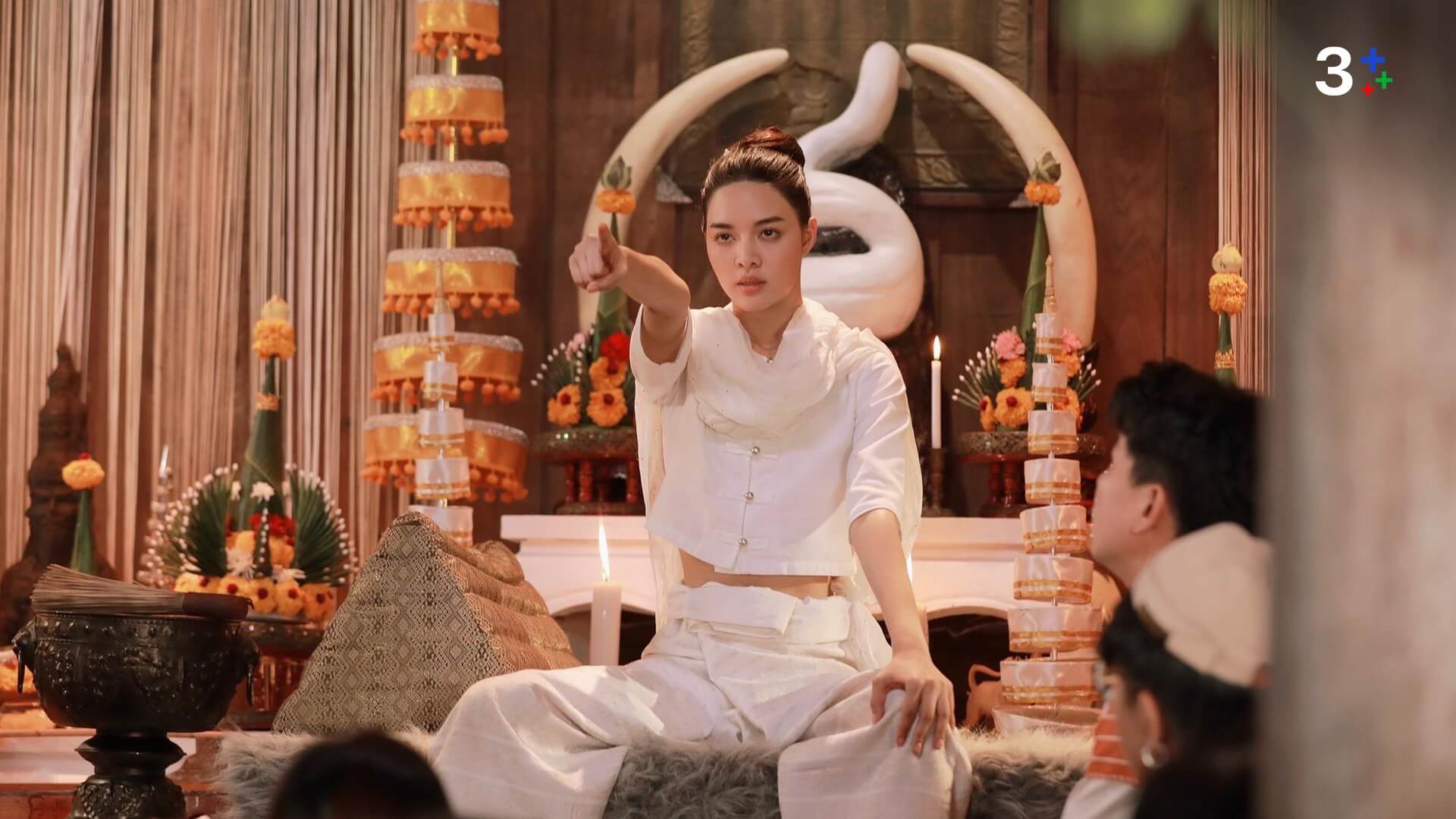 ขณะที่นางเอกสาวน้องใหม่ “หญิง อาณดา” พูดถึงบทบาทนี้ว่า “ต้นตระกูลฟ้ามุ่ยเป็นร่างทรงสืบมารุ่นต่อรุ่น ที่หมู่บ้านจะมีความเชื่อคือเรื่องเจ้าแม่ปลาไหลเผือก เป็นจุดศูนย์รวมของทุกคนในหมู่บ้าน ด้วยความที่ฟ้ามุ่ยเป็นเด็กสมัยใหม่จึงไม่เห็นด้วยกับสิ่งที่ยายทำ เมื่อยายเสียก็ได้ฝากฝังให้เราไปเป็นร่างทรง แต่ตัวเราเองอยากจะเอาวิชาการทั้งหมดที่เรียนมาไปช่วยชาวบ้านแทน วันหนึ่งก็เกิดเหตุจากการเข้ามาของสัตยาทำให้ชาวบ้านไขว้เขว หลาย ๆ คนก็อยากจะขายที่