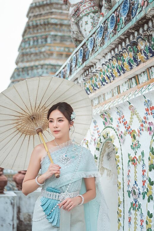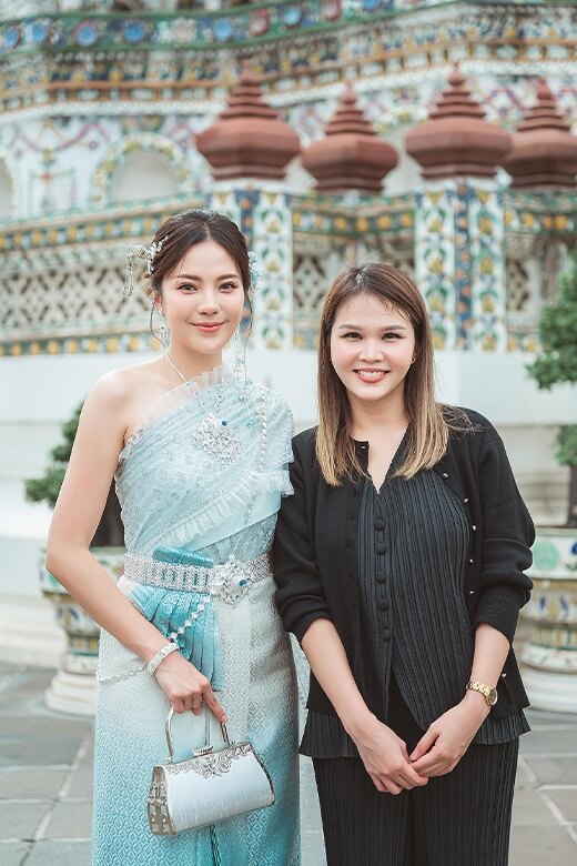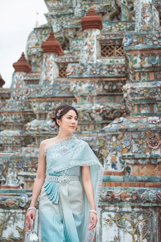 “เม นิศาชล” เผยว่า “ถือเป็นครั้งแรกในชีวิตของเมเลยค่ะที่ได้มาเช่าชุดไทยใส่เที่ยววัดแบบนี้ แถมยังได้นั่งเรือชมวิวด้วย ซึ่งเมยังไม่เคยมาเที่ยวแบบนี้เลยค่ะ ก็รู้สึกตื่นเต้นมาก ๆ ตอนที่เดินเข้ามาในวัดก็เห็นทุกคนใส่ชุดไทยตั้งแต่ลงเรือมาแล้ว ก็เลยรู้สึกว่าถ้าเราเป็นเจ้าของร้านเช่าชุดไทยมันคงชื่นใจที่ได้เห็นแบบนี้ ได้เป็นส่วนหนึ่งในการช่วยบอกกล่าวถึงชุดไทยและวัฒนธรรมไทย ถือเป็นการสร้าง Value ให้กับการท่องเที่ยวของประเทศไทยด้วย ซึ่งต้องบอกว่าอาชีพการเปิดร้านเช่าชุดไทยที่เมได้มาเรียนรู้ในวันนี้เหมือนกับเราได้มาพรีเซนต์ประเทศไทย พรีเซนต์ชุดไทย เหมือนเวลาที่เราไปเที่ยวต่างประเทศแล้วใส่ชุดประจำชาติของประเทศนั้น ๆ ไปท่องเที่ยวในสถานที่สำคัญของประเทศเขา แต่ถ้ามาเที่ยวเมืองไทยเราก็อยากให้ใส่ชุดไทยไปเที่ยวสถานที่สำคัญ ๆ อย่างเช่นที่วัดอรุณฯ ที่เมมาเที่ยวในวันนี้ ซึ่งชุดที่เมใส่มาในวันนี้ก็เป็นชุดจากร้าน SENSE OF THAI ซึ่งชุดเขาสวยมาก ๆ เป็นเจ้าแรก ๆ เลยที่ทำธุรกิจเปิดร้านเช่าชุดไทยใส่เที่ยววัดแบบนี้ แล้วมีนักท่องเที่ยวทั้งชาวไทยและชาวต่างชาติไปใช้บริการเยอะมาก ๆ ซึ่งคุณโฟม เจ้าของร้านก็ให้คำแนะนำต่าง ๆ ทั้งการเลือกชุด จุดเริ่มต้นในการทำอาชีพนี้ หัวใจสำคัญในการให้บริการลูกค้า ซึ่งการที่เมได้มาเรียนรู้อาชีพการเปิดร้านเช่าชุดไทยเที่ยววัดในวันนี้ก็เหมือนเป็นการเปิดประสบการณ์ใหม่ ๆ สำหรับเมเหมือนกัน และเชื่อว่าน่าจะเป็นแรงบันดาลใจให้กับคนที่สนใจอยากเริ่มทำอาชีพแบบนี้ ซึ่งในกรุงเทพฯ ตอนนี้ธุรกิจนี้อาจจะมีเยอะแล้ว แต่ถ้าใครอยู่ต่างจังหวัดก็อาจจะลองเริ่มต้นไปเปิดใกล้ ๆ สถานที่ท่องเที่ยวสำคัญ ๆ ในจังหวัดของคุณก็ได้นะคะ แต่เมคิดว่าไม่ว่าเราจะเริ่มทำธุรกิจอะไร หัวใจหลักที่เมได้เรียนรู้ในวันนี้คือการใส่ใจลูกค้า การใส่ใจในรายละเอียดที่จะทำให้เราประสบความสำเร็จในอาชีพของเราค่ะ"