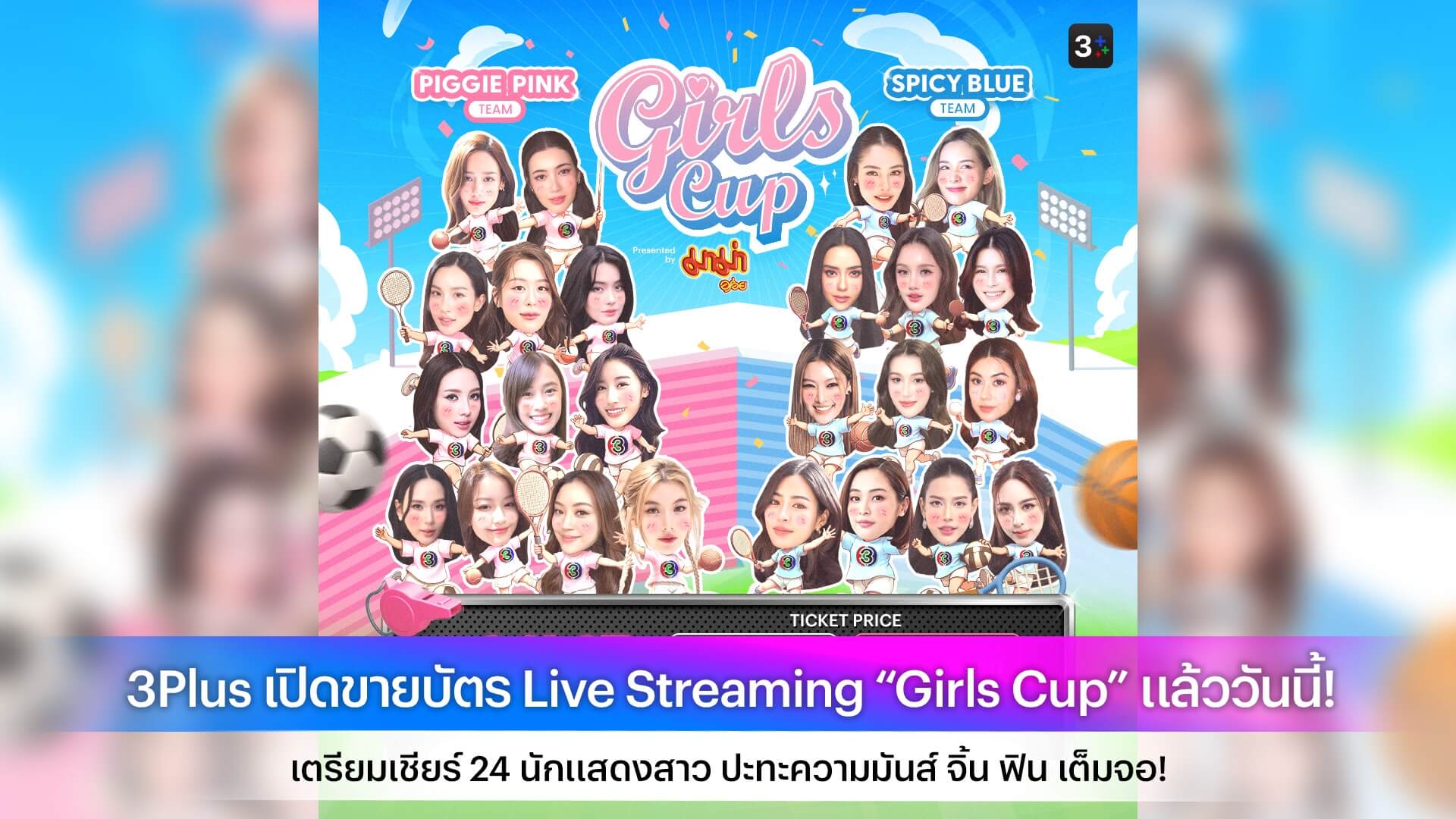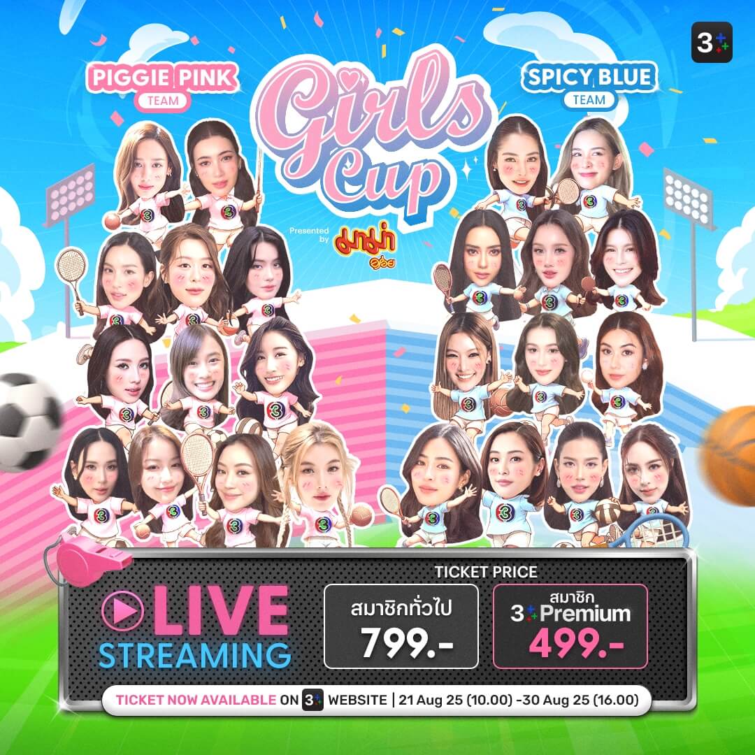 3Plus เปิดขายบัตร Live Streaming “Girls Cup” แล้ววันนี้! เตรียมเชียร์ 24 นักแสดงสาว ปะทะความมันส์ จิ้น ฟิน เต็มจอ!