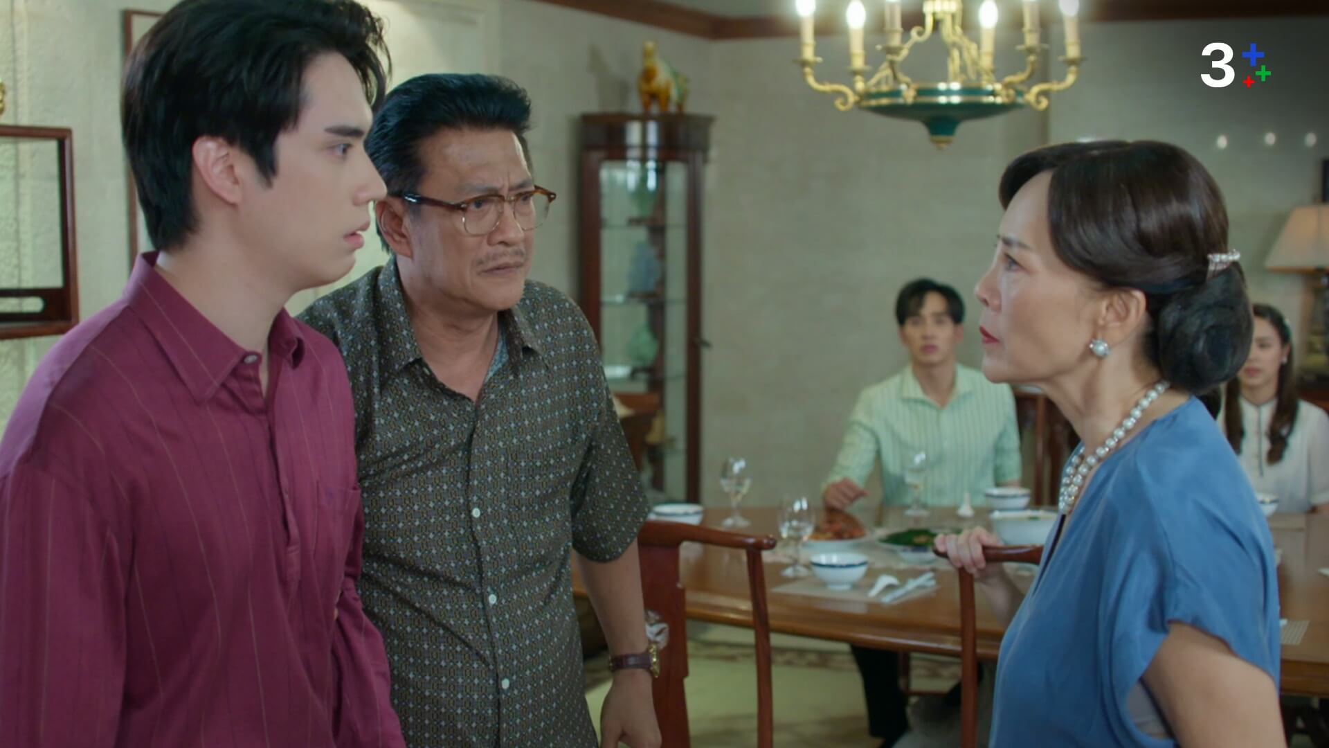 ฉากนี้จัดเต็มด้วยสมาชิกครบทีมของบ้านใหญ่ หลังจาก ราณี (พีพี ปุญญ์ปรีดี) ย้ายเข้ามาอยู่ในฐานะสะใภ้ใหม่ จึงมีการเลี้ยงต้อนรับอย่างอบอุ่น แต่แล้วบรรยากาศกลับพลิกในพริบตา เมื่อรณกรเปิดตัวหญิงสาวปริศนาท่ามกลางสายตาทั้งครอบครัว เล่นเอาทั้ง เถ้าแก่จิว (ศักราช ฤกษ์ธำรงค์) พวกพี่ ๆ และบรรดาสะใภ้ ตะลึงกันเป็นแถว แต่... ไฮไลต์ฉากนี้อยู่ที่ คุณนายเหมย นางพญาของบ้านที่เลือดขึ้นหน้าเมื่อเห็น แหวนประจำตัวของตัวเองไปอยู่บนนิ้วของโฉมฉวี! งานนี้ความเดือดพุ่งปรอทแตก สวนกลับลูกชายคนเล็กชนิดไม่ยั้ง แถมยังมี เฉิน (สิงโต สกลรัฐ) แอบแขวะเติมไฟให้บ้านปั่นป่วนยิ่งขึ้น