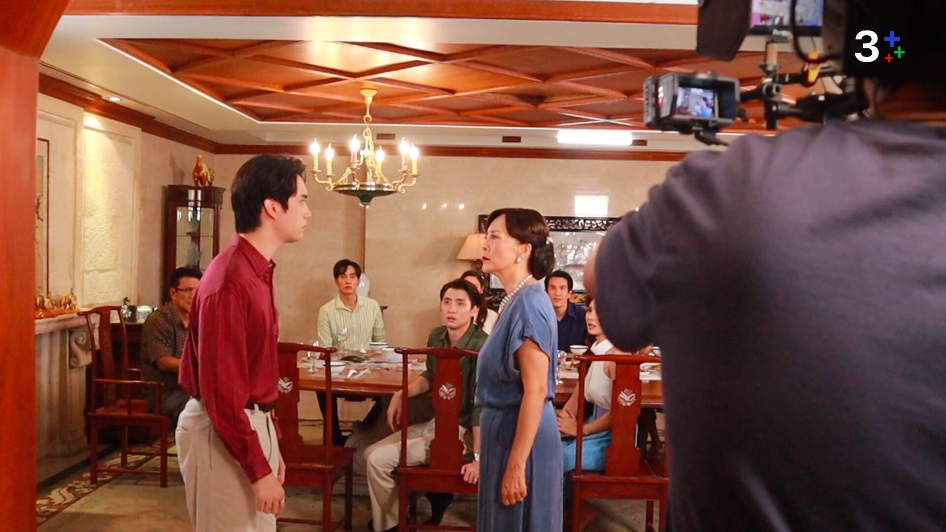 เบื้องหลังฉากนี้ถือว่าเป็นการจับปูใส่กระด้งจริง ๆ เพราะเป็นการรวมตัวนักแสดงกว่า 11 ชีวิต ในซีนดินเนอร์เดียว แถมบทสนทนายาวเหยียด 2–3 หน้ากระดาษ โดยเฉพาะคู่ปะทะเดือด ตี๋ และ พี่ต่าย ที่ต้องซ้อมบล็อกกิ้งกันเป๊ะ ๆ เพื่อให้การปะทะอารมณ์ไหลลื่นในเทคจริง ด้าน รัก (มีน พีรวิชญ์) ก็ยังต้องเชือดเฉือนกับ เฉิน ไม่หยุด ขณะที่สะใภ้บ้านใหญ่ ดวงพร (ฟอร์จูน กนกกาญจน์) และ หงส์หยก (น้ำหนึ่ง สุทธิเดชานัย) ก็ไม่พลาดจิกกัดเหน็บแนมตามคาแรคเตอร์ สุดท้ายต้องให้คู่หวาน รวี (กองทัพ พีค) และ ราณี คอยเป็นผู้พยุงความยุติธรรมให้โฉมฉวี พอถึงเวลาเข้าฉากจริง ทุกคนเล่นกันได้ละเอียดเก็บครบทุกอารมณ์ โดยเฉพาะ ตี๋ ที่ต้องปะทะฝีปากใส่คุณนายเหมยเป็นครั้งแรก งานนี้ พี่ต่าย ก็ไม่มีแผ่ว สาดอารมณ์มาเท่าไหร่ยิ่งสาดกลับไปมากกว่าเดิม สมกับเป็นรุ่นใหญ่มากฝีมือ