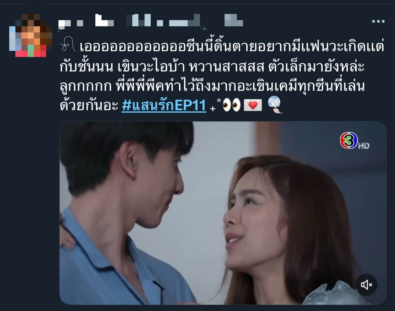 แสงแดดพายุฝนยังไม่สู้กระแสความปังของละคร “แสนรัก” ทางช่อง 3 เพราะทุกครั้งที่ออกอากาศก็มีประเด็นความมันส์ให้ได้พูดถึงกันอย่างต่อเนื่อง โดยเฉพาะความสนุกของ อีพี 11 ที่ผ่านมา เรียกว่ากลายเป็นทอล์กออฟเดอะทาวน์ กับประเด็นความแซ่บของลูกชายคนเล็กรณกร (ตี๋ ธนพล) ที่พาว่าที่ลูกสะใภ้ โฉมฉวี (เม นิศาชล) มาเปิดตัว ทำเอา ม๊าเหมย (ต่าย เพ็ญพักตร์) ถึงกับเลือดขึ้นหน้า แถมลูกชายทั้ง 3 ยังถูกทำร้ายกันทุกคน ทำเอาบ้านร้อนเป็นไฟกันเลยทีเดียว