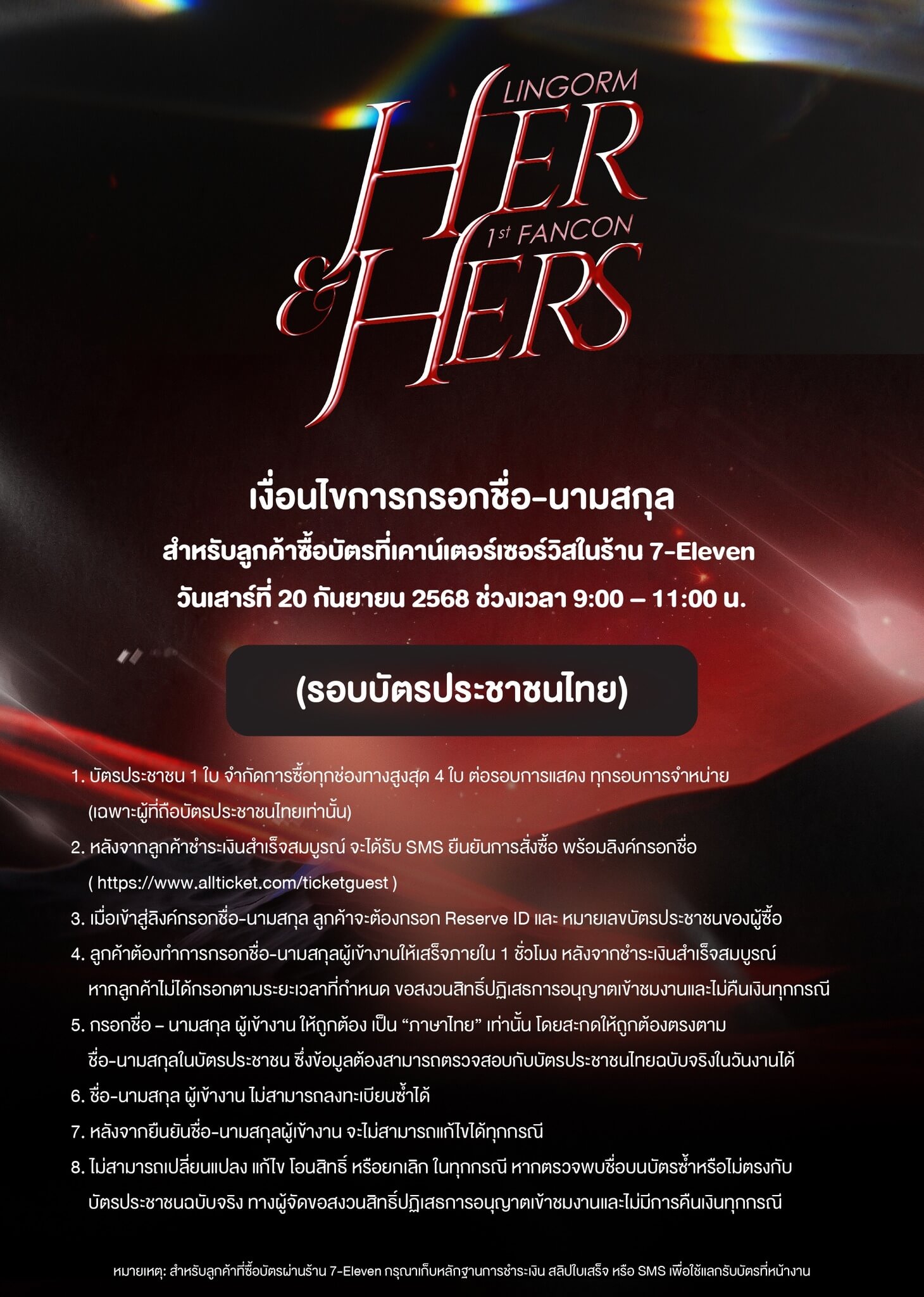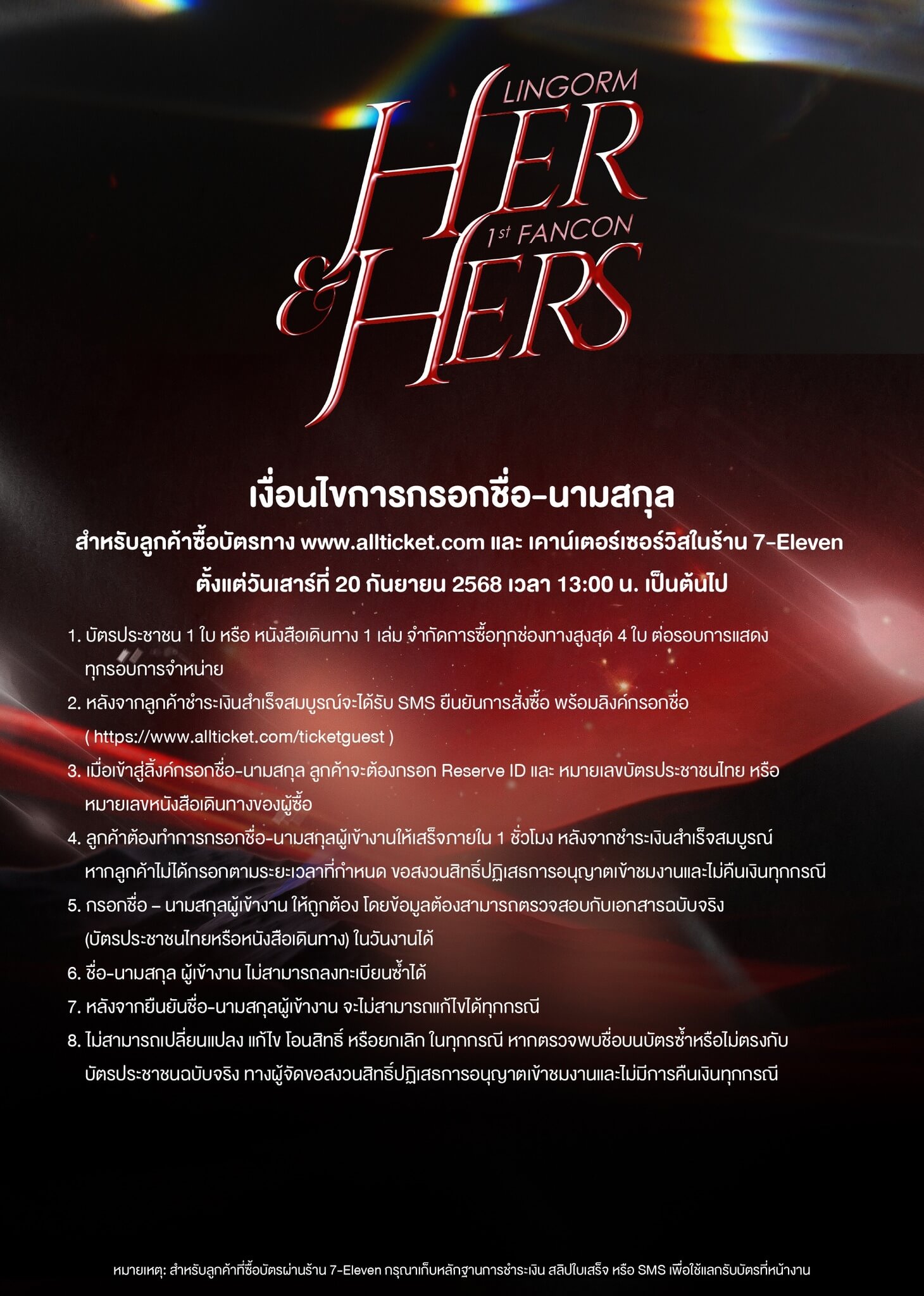 พร้อมเขย่าวงการแซฟฟิกให้ลุกเป็นไฟ เมื่อสองสาวสุดฮอต “หลิงหลิง คอง” และ “ออม กรณ์นภัส” จากซีรีส์ เพียงเธอ Only You The Series ทางช่อง 3 ประกาศบิ๊กเซอร์ไพรส์ให้แฟนคลับได้กรี๊ดกันฮอลล์แตก! กับแฟนคอนครั้งแรก HER & HERS LINGORM 1st FANCON ในวันที่ 8 พฤศจิกายน 2568 ที่ อิมแพ็ค อารีน่า เมืองทองธานี หลังจากปล่อยผังที่นั่งออกมาชวนพาตาลุกวาว พร้อมขนความพิเศษมาเอาใจแฟน ๆ กันแบบจัดเต็มให้สมกับการรอคอย