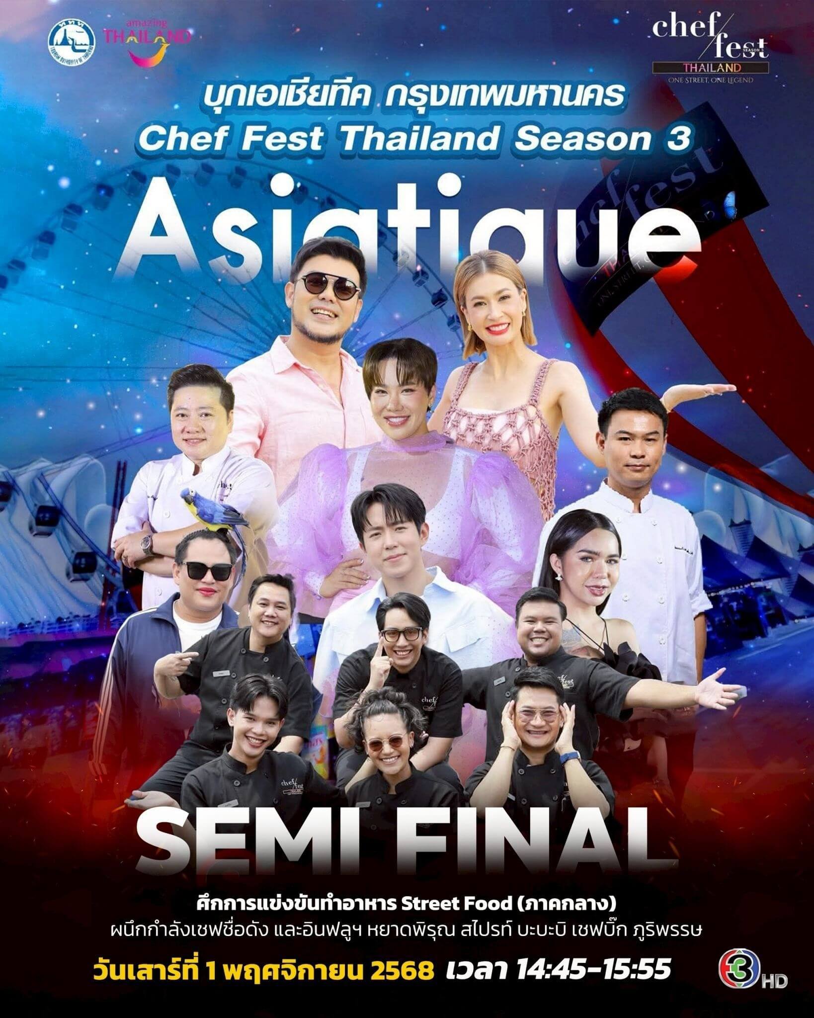 พลาดไม่ได้ใน “Chef Fest Thailand Season 3 : One Street,One Legend” วันเสาร์ที่ 1 พฤศจิกายน 2568 เวลา 14.55 น. ทางช่อง 3