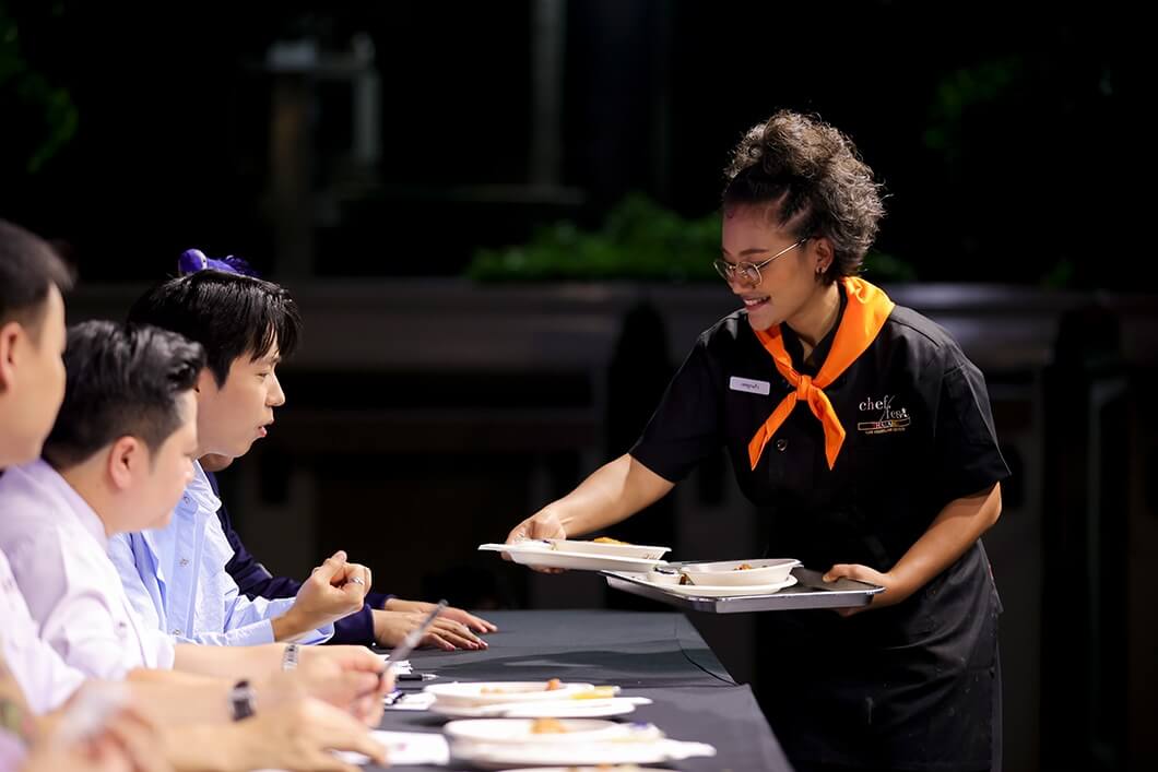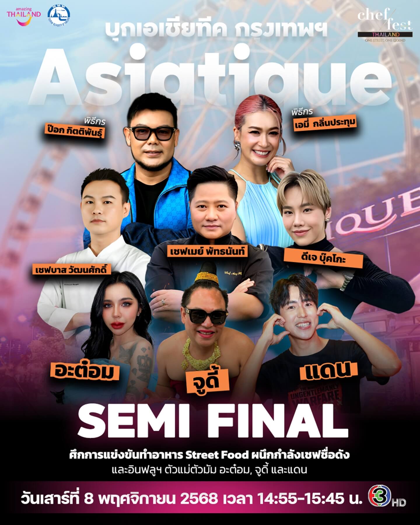 ได้เวลาปิดฉากศึกข้าวแกงใต้! ของ 6 เชฟสู้สงครามระอุเพื่อชิงตำแหน่ง 4 คนสุดท้ายเข้าสู่รอบไฟนอล!! สำหรับรายการแข่งขันทำอาหารเรียลลิตี้สุดมันส์แห่งปี “Chef Fest Thailand Season 3 : One Street, One Legend” ที่ยกระดับความเผ็ดร้อนของเมนูภาคใต้ไปอีกขั้น ณ เอเชียทีค เดอะ ริเวอร์ฟร้อนท์ เดสติเนชั่น กรุงเทพฯ หลังจากรอบก่อนหน้า เชฟทั้ง 6 ต้องงัดไอเดีย Re-image เมนูแกงใต้แบบถึงพริกถึงขิง EP8เสาร์นี้ ความกดดันพุ่งทะลุจุดเดือด เมื่อแต่ละเชฟต้องวัดสกิลตัวต่อตัวพร้อมพรีเซ้นต์และปรับสูตรตามคอมเมนต์กรรมการ ก่อนเปิดตลาดขายจริงให้กับ ลูกค้ากว่า 100 คน เพื่อพิสูจน์ฝีมือและรสชาติในสนามจริง! โดยมี 3 คณะกรรมการ เชฟเมย์–พัทธนันท์ ธงทอง, เชฟบาส–วัฒนศักดิ์ ช่างเก็บ และ ดีเจบุ๊คโกะ-ธนัชพันธ์ บูรณาชีวาวิไล พร้อม 3 อินฟลูสุดฮอต จูดี้-จารุกิตติ์, แดน-คิมอินฮยอน และ อะต๋อม-ทัตพล ชุมแสง ในฐานะกรรมการพิเศษ ร่วมตัดสินและลุยแจกคูปองขายอาหารด้วยตัวเอง! โดยเฉพาะแดนหนุ่มกิมจิหัวใจไทย ที่เข้าครัวขอแจมหน้าเตากับทีมเชฟ ช่วยทำอาหารสไตล์น่ารักๆ ที่ใครเห็นต้องยิ้มแก้มแตก ซึ่งแดนบอกว่า “ปกติชอบกินอาหารไทย การได้เข้าครัวและลองทำอาหารเบาๆ กับทีมเชฟเป็นประสบการณ์ที่สนุกมาก ยิ่งได้เห็นเมนูที่ผู้เข้าแข่งขันรีอิมเมจออกมา ยิ่งรู้สึกว้าว ทึ่งทั้งฝีมือและไอเดียของเชฟไทยมากๆครับ” งานนี้ทั้ง 6 เชฟต้องทุ่มสุดแรง แข่งทั้ง “การขาย” และ “ความอร่อย” ในเวลาจำกัดเพียง 20 นาทีสุดท้าย เพื่อเก็บคะแนนจากลูกค้าจริง ก่อนที่ผลรวมจากกรรมการและลูกค้าจะตัดสินว่า ใครจะ “อยู่หรือไป” เมื่อพิธีกร ป๊อก–กิตติพันธุ์ ปั้นตะกั่ว และ เอมี่–กลิ่นประทุม ประกาศชื่อผู้ผ่านเข้าสู่รอบ ไฟนอล 4 คนสุดท้าย และกล่าวอำลา 2 เชฟที่ต้องกลับบ้าน บรรยากาศทั้งน้ำตา ความภูมิใจ และเสียงปรบมือจากคนดูในงานเอเชียทีค การแข่งครั้งนี้ไม่ใช่แค่เรื่องของรสชาติ...แต่มันคือ “ใจ” ของเชฟที่ต้องสู้สุดฝีมือ