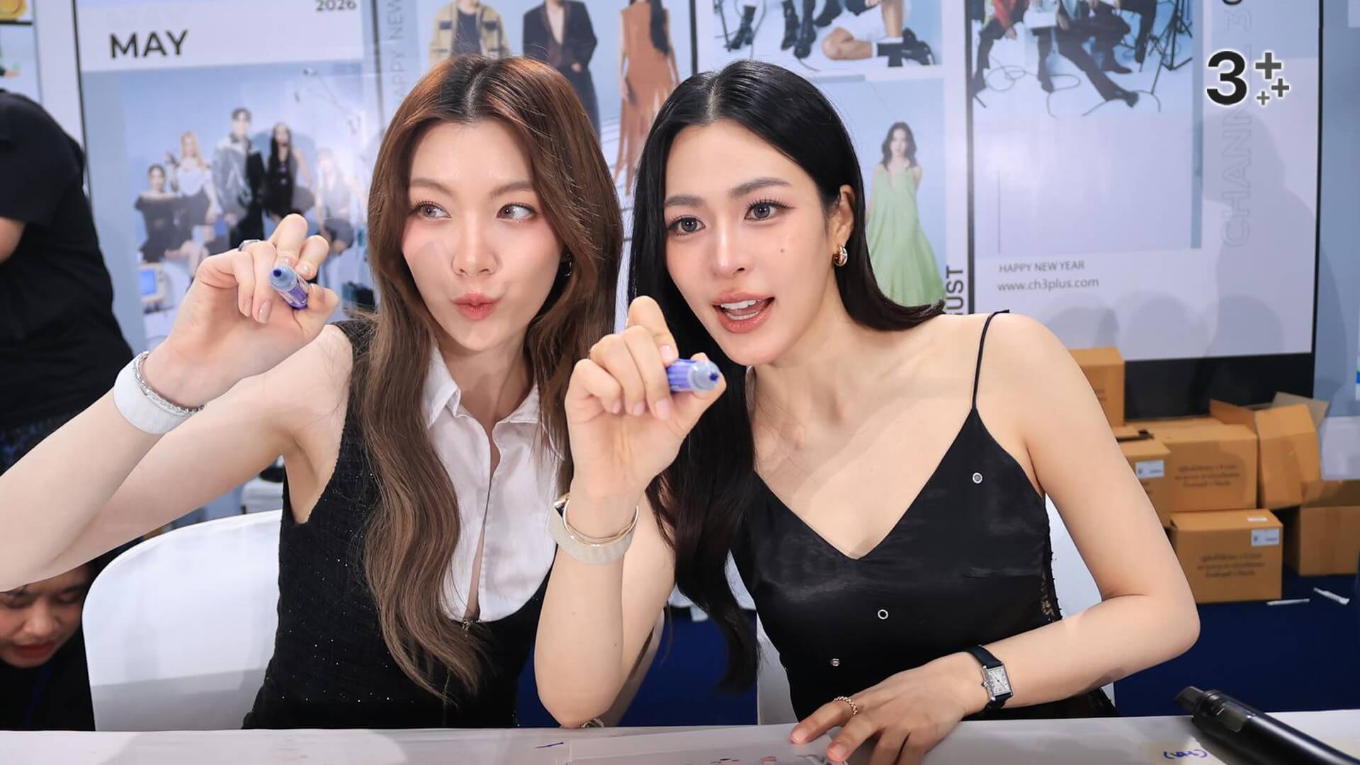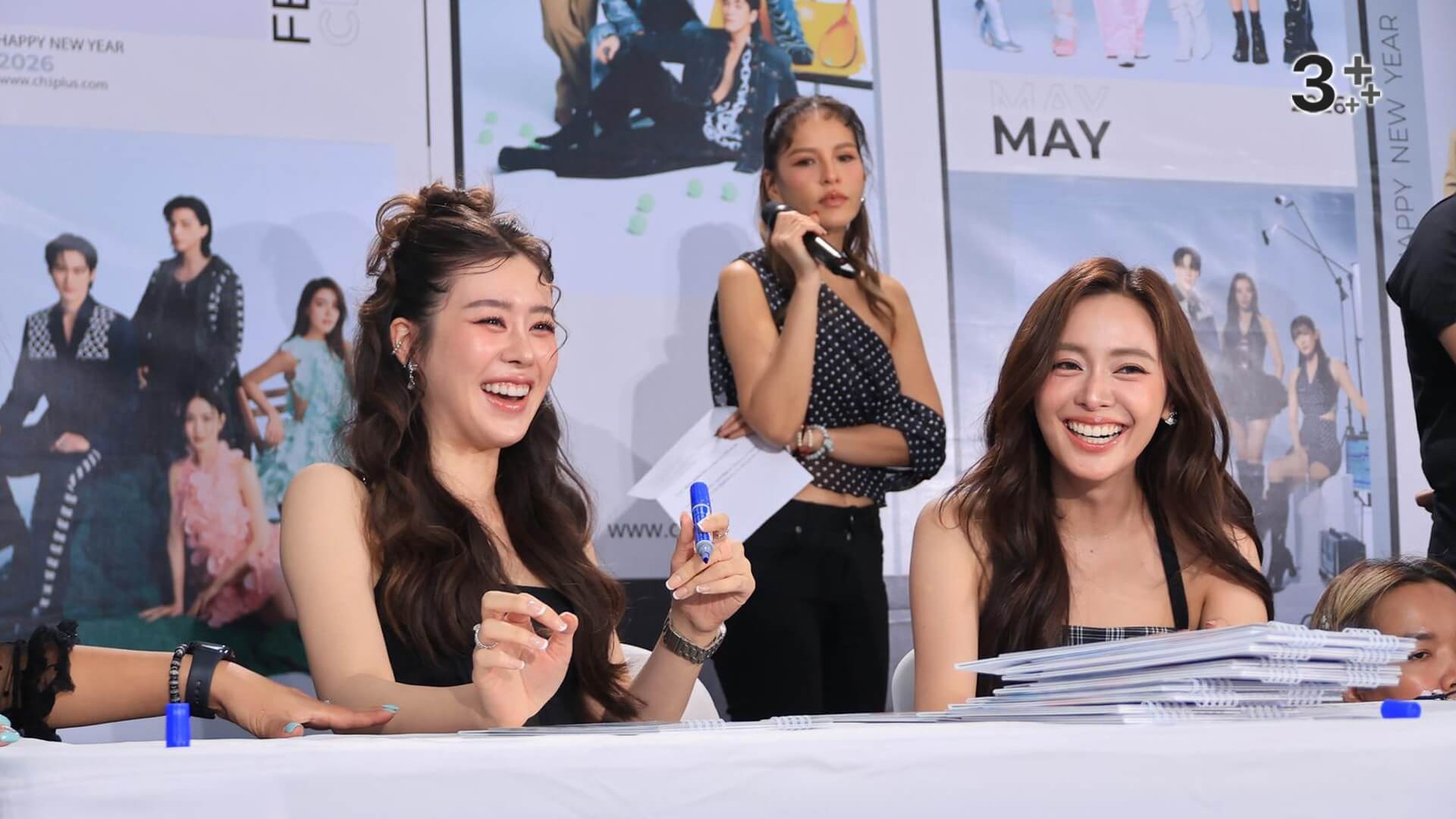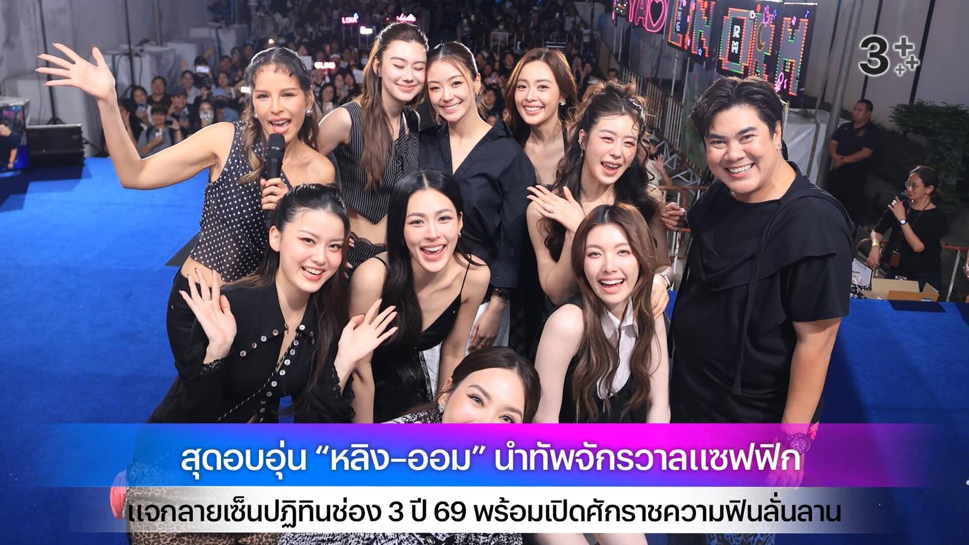 ลานกิจกรรมช่อง 3 มาลีนนท์ กลายเป็นพื้นที่อบอวลด้วยเสียงกรี๊ดสนั่น เมื่อเหล่านักแสดงสุดฮอตจากจักรวาลแซฟฟิกยกทีมมามอบความฟินให้แฟน ๆ อย่างใกล้ชิดนำทีมมาโดย “หลิงหลิง คอง – ออม กรณ์นภัส” แท็กทีมคู่หวานสุดปังอย่าง “ลีน่า ลลินา – หมิว ณัชชา”, “แทน ดวงแก้ว – ญดา นริลญา” และ “อุ้ม อิษยา – แบม สราลี” มาร่วมกิจกรรมเซ็นปฏิทินช่อง 3 ปี 69 วันที่ 3 ที่จัดขึ้นเมื่อวันที่ 20 พฤศจิกายนที่ผ่านมา สร้างความคึกคักให้แฟน ๆ ชาวไทยและต่างประเทศได้ใจฟูตั้งแต่วินาทีแรกที่สาว ๆ ปรากฏตัว