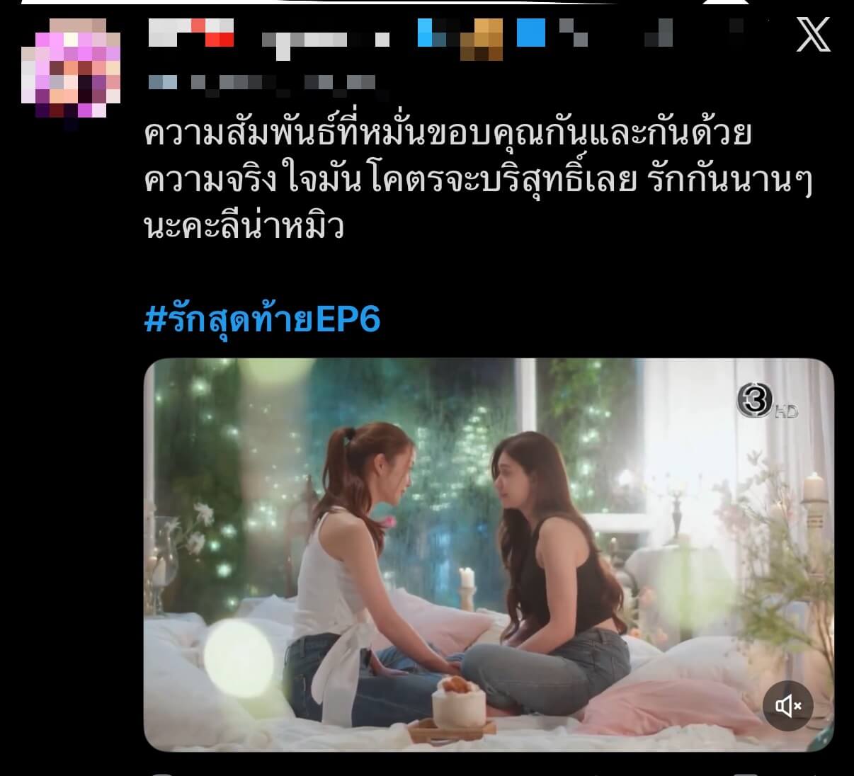 นับว่าเป็นซีรีส์ที่แฟน ๆ ให้ความสนใจอย่างล้นหลามกับความสัมพันธ์ของ “อลิน-เจน” ที่ตอนนี้เริ่มมีตัวแปรมาทำให้ความสัมพันธ์สั่นคลอน ตามเอาใจช่วยไปพร้อมกัน 2 ตอนสุดท้ายใน “รักสุดท้าย My Safe Zone The Series” ทุกวันศุกร์ เวลา 20.30 น. ทางช่อง 3 ดูย้อนหลังทั่วโลกทาง 3Plus พร้อม Subtitle ภาษาอังกฤษ สมาชิก 3Plus Premium ดูย้อนหลังทุกวันศุกร์ เวลา 22.30 น. ลูกค้าทั่วไปดูย้อนหลังทุกวันอังคาร