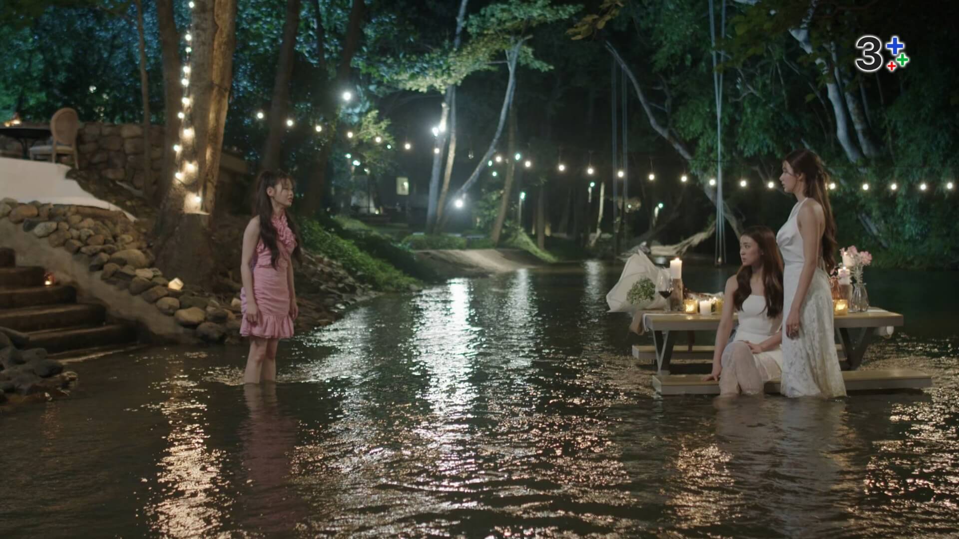 ด้านเบื้องหลังซีนนี้บอกเลยว่าไม่ธรรมดาโดยเฉพาะ หมิว ที่ต้องถ่ายฉากกลางลำธารในช่วงแสงน้อย ทั้งที่เจ้าตัวกลัวความมืดอย่างหนัก แต่ยังฮึบลุยฉากที่ต้องเดินไปในน้ำทั้งที่แทบมองไม่เห็นสิ่งใต้น้ำ โชคดีได้ ลีน่า คอยอยู่เป็นเพื่อนและชวนคุยให้ลืมความกลัวตลอดการถ่ายทำ