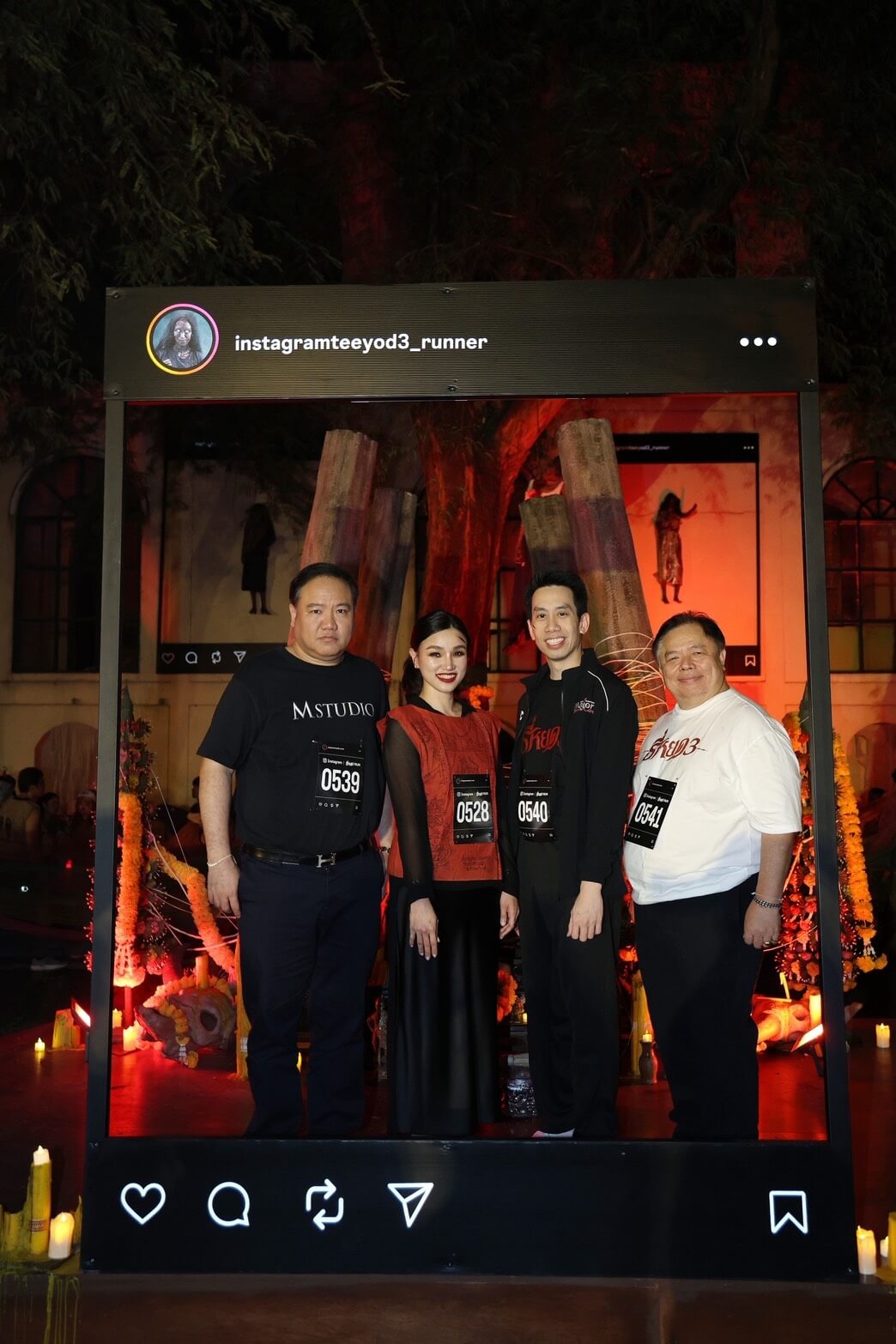 ครีเอทคอนเทนต์กับจุด Checkpoint สะพรึงในทุกกิโลเมตร ให้ความเฮี้ยนลั่นฟีด Instagram กันแบบจัดเต็ม อีกทั้งยังได้รับเหรียญธี่ระทึก ดีไซน์พิเศษที่ออกแบบมาสำหรับงานนี้โดยเฉพาะ โดยได้รับเกียรติจาก รศ.ทวิดา กมลเวชช รองผู้ว่าราชการกรุงเทพมหานคร มาร่วมวิ่งเปิดงาน พร้อมด้วย คุณภารดี สินธวณรงค์ Head of Marketing, Thailand & Philippines, Meta, คุณสุรเชษฐ์ อัศวเรืองอนันต์ ประธานเจ้าหน้าที่บริหาร M STUDIO, คุณสุบัณฑิต สุวรรณนพ รองกรรมการผู้อำนวยการ สำนักผังรายการ บริษัท บีอีซี เวิลด์ จำกัด (มหาชน), คุณนรุตม์ เจียรสนอง รองประธานเจ้าหน้าที่บริหารฝ่ายการตลาด บริษัท เมเจอร์ ซีนีเพล็กซ์ กรุ้ป จำกัด (มหาชน) พร้อมยังมี ต้อม-ธนเดช ประดิษฐ์ ผู้กำกับ และทีมนักแสดงจาก “ธี่หยด 3” ได้แก่ จูเนียร์ กาจบัณฑิต ใจดี, แฉะ องอาจ เจียมเจริญพรกุล และ แก๊ป จักริน ภูริพัฒน์ มาร่วมสร้างตำนานความหลอน ท่ามกลางบรรยากาศคึกคักของแฟนหนังและนักวิ่งจำนวนมาก เริ่มออกสตาร์ทกันตั้งแต่ อาคารไปรสนียาคาร, สะพานพุทธ, สะพานพระปกเกล้า, เลียบคลองโอ่งอ่าง, สะพานสมมตอมรมารค, เสาชิงช้า, สวนอุณากรรณ, ดิโอลด์สยาม, ปากคลองตลาด และกลับมาเข้าเส้นชัย ณ อาคารไปรสนียาคาร รวมระยะทาง 5.5 กิโลเมตร เรียกได้ว่าเป็นการผสานความหลอน ความสนุก และพลังแฟนหนังไว้ในงานเดียวอย่างลงตัว