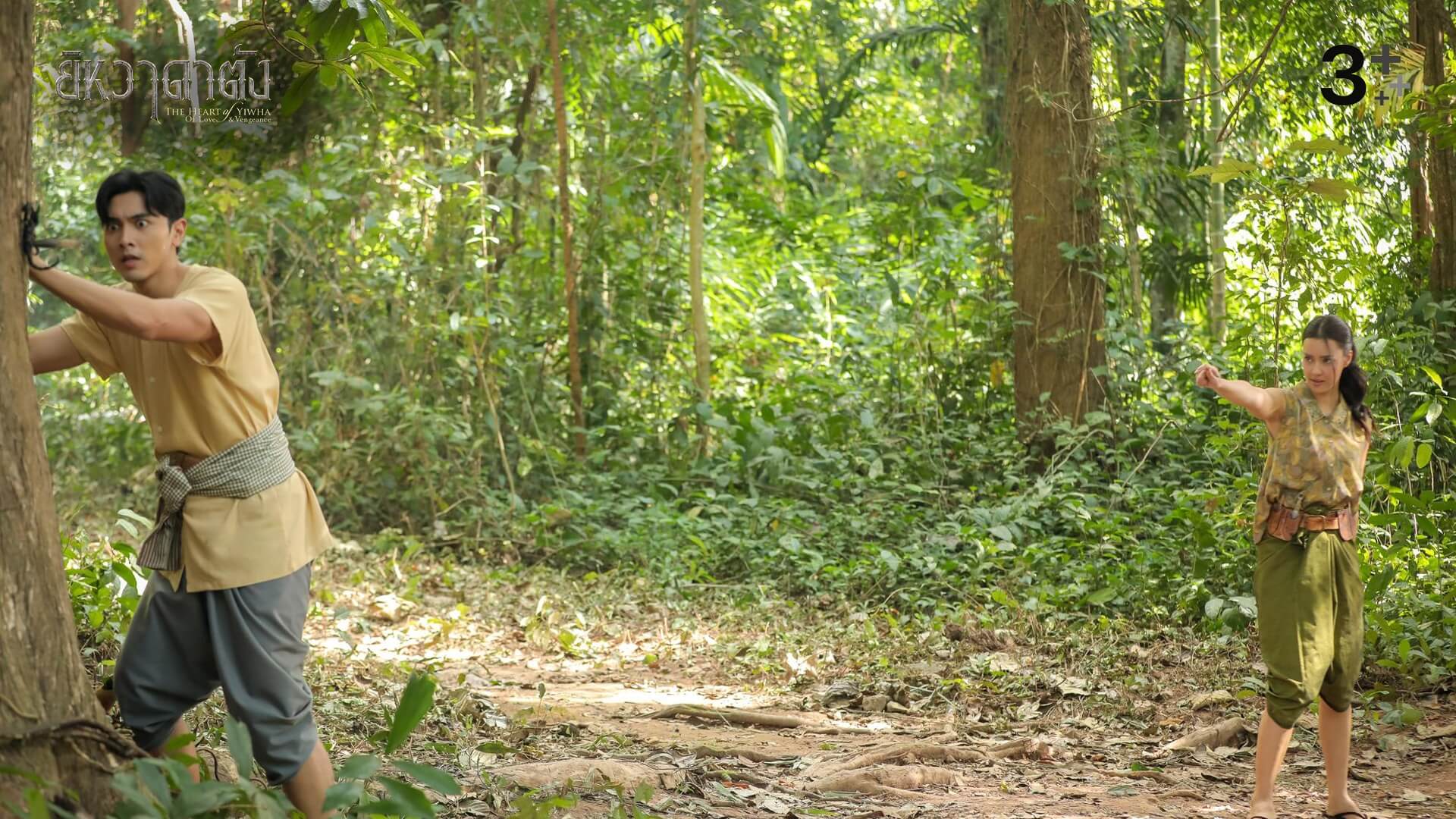 เปิดฉากแรกก็กลายเป็นคู่กัดกันเรียบร้อย สำหรับ ภณ-อแมนด้า แค่ได้เจอกันปุ๊ป! สาวอแมนด้าก็ปามีดใส่ไปเต็ม ๆ ฉากนี้เป็นฉากที่พระเอกภณ แอบหนีขุนยอดภักดี(ชาย ชาตโยดม) ผู้เป็นพ่อ เข้ามาในป่าเพื่อเก็บชันโรงไปทำยา และได้เจอกับนางเอกอแมนด้า ที่แอบหนีมาเที่ยวเล่น เข้ามาช่วยชีวิตตนเองไว้โดยบังเอิญ แต่เจอกันครั้งแรกก็เกิดเป็นเคมีคู่กัดคู่ใหม่เข้าแล้ว!! เมื่ออแมนด้าทำเอาหนุ่มภณหัวใจเกือบหล่นไปที่ตาตุ่ม เพราะปามีดสั้นปักเจ้าแม่งป่องตัวร้ายที่จ้องจะเล่นงานหนุ่มภณเพื่อช่วยชีวิต แต่หนุ่มภณดันคิดว่าสาวเจ้าเล่นพิเรนทร์จะปามีดใส่ตนเอง เลยเกิดการปะทะฝีปากกันชุดใหญ่ ก่อนที่อแมนด้าจะลงเอยโดนเจ้าแมงป่องต่อยที่เท้าจนล้มก้นกระแทกพื้น เดือดร้อนหนุ่มภณต้องหาสมุนไพรมาทำเป็นยารักษาให้กลางป่าเสียอีก
