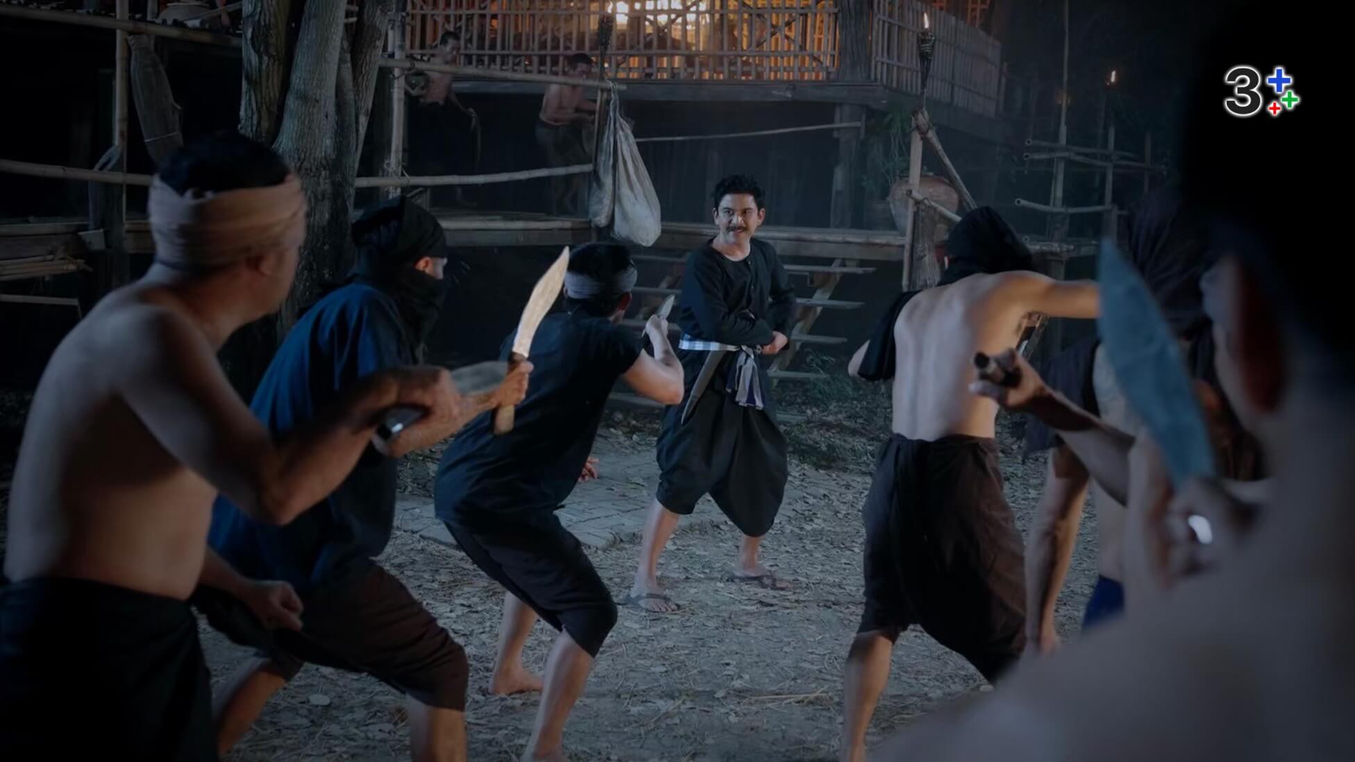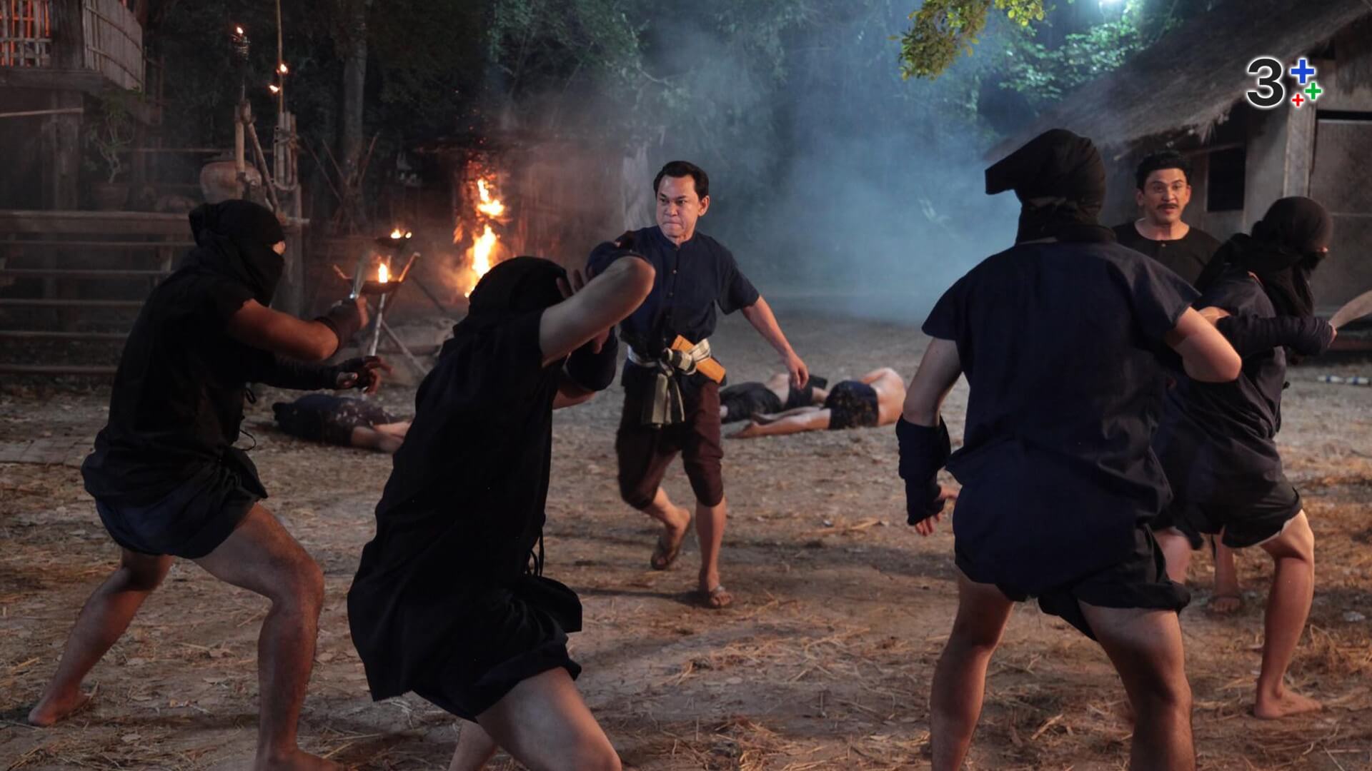 เป็นอีกหนึ่งฉากใหญ่ของเรื่องเลยก็ว่าได้ เมื่อชุมเสือ แตกทำให้ถูกพวกของทิม(วุตม์ สุรินทร) เข้ามาเล่นงาน เพราะมนต์บังตาที่เสือหวัด(ป๋อ ณัฐวุฒิ)ได้ร่ายคาถาเอาไว้ที่หน้าปากทางเข้าชุมเสือได้เสื่อมลง งานนี้รุ่นใหญ่เลยขอโชว์สกิลบู๊ให้สมกับฉายาพระเอกคิวบู๊เสียหน่อย แท็กทีมตี๋ ดอกสะเดา บู๊ปะทะกับทีมสตั๊นรุ่นน้อง ฉากนี้ใช้เวลาในรายการซ้อม และถ่ายทำไปถึง 4 ชั่วโมงเต็ม ด้วยความที่เป็นฉากบู๊ นักแสดงหลักทีมสตั๊น และนักแสดงสมทบทุกคนต้องซักซ้อมเพื่อความแม่นยำ แถมยังมีการถ่ายทำด้วยกล้องตัวเดียวเป็นระยะเวลานานเพื่อให้ได้ภาพที่สมจริง งานนี้ 2 นักแสดงรุ่นใหญ่ ป๋อ-ตี๋ ทุ่มสุดตัว ซักซ้อมคิวบู๊เข้าออกกันแบบเป๊ะๆ จนผู้กำกับคุ้ยยกนิ้วให้ แถมยังเผยอีกว่า ถ้าฉากนี้ออกไป ต้องเกิดคู่จิ้นคิวบู๊คู่ใหม่แน่นอน