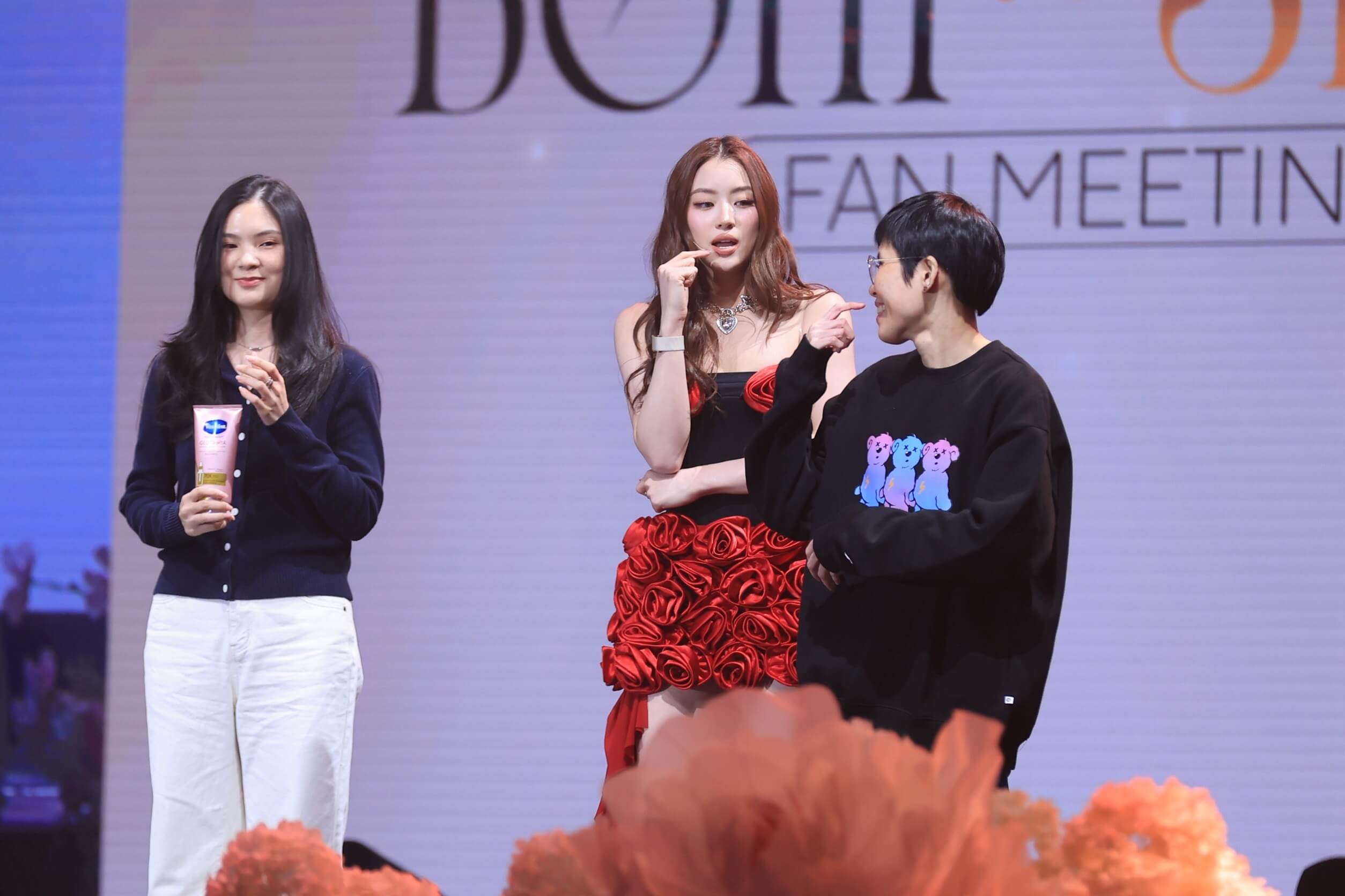 นับว่าเป็นการรวมตัวของเหล่าชาว Gumber bear ที่เต็มไปด้วยความรักและความคิดถึงสองสาวกันสุดใจ เพราะได้รวมตัวกันจัดซุ้มสวย ๆ ให้เป็นของขวัญกันได้ถ่ายรูปกันแบบฟิน ๆ งานนี้ทำเอาทุกคนใจฟูไปตาม ๆ กัน เพราะนอกจากจะได้เห็นความน่ารักละมุนของทั้งคู่แล้ว ยังมีโมเมนต์และเซอร์ไพรส์สุดพิเศษที่นำมาเสิร์ฟแบบไม่ยั้งโดยมีพิธีกรอารมณ์ดี “แพท ณปภา ตันตระกูล” รับหน้าที่พาแฟน ๆ อินไปกับทุกโมเมนต์ โดย “ลีน่า-หมิว” เปิดเวทีมาแบบอลังการด้วยโชว์เพลง “WONDERING” ที่พาทุกคนเข้าสู่โลกแฟนตาซี GUMBER BEAR LAND ก่อนที่ลีน่าและหมิวจะออกมาทักทายแฟนคลับท่ามกลางเสียงกรี๊ดสนั่นฮอลล์ พร้อมเล่าถึงคอนเซ็ปต์งานและความตั้งใจที่อยากมอบช่วงเวลาพิเศษให้ทุกคน ความสนุกยังไม่หมดแค่นั้น เพราะมีเกมเรียกเสียงหัวเราะอย่าง “Mirror Mirror จงบอกข้าเถิด ใครโพสต์ท่าเริ่ด! ที่สุดในเวที” ที่เปิดโอกาสให้แฟน ๆ ได้ขึ้นเวทีมาเล่นสนุกแบบใกล้ชิด เพราะต้องก๊อปปี้ท่าให้เป๊ะ เสมือนมองกระจก ทำเอาสองสาวกับแฟนคลับเขินจนเก็บอาการกันไม่อยู่ในช่วง FAN CAM ACTIVITY ก่อนจะสาดเสน่ห์ออร่ากันต่อด้วยโชว์เดี่ยวสุดปังในเพลง “Feat” ของ ลีน่า สวมบท Madame Lee เจ้าของ Secret Garden ร้อง เต้น กับ Gazebo ในมู้ดสุดเซ็กซี่ และเพลง “Bad Shawty” ของ หมิว ที่สวมบท Lady M ตัวแม่ในแนว Cute Vibes เรียกว่าทั้งคู่แดนซ์สะบัดไม่เกรงใจสะโพกกันเลยทีเดียว ก่อนพักเบรกในเกม “Radiance Re-Dance แดนซ์เล่นแสงโชว์ผิวฉ่ำวาว” ที่ได้จับฉลากสุ่มผู้โชคดีขึ้นมาร่วมจอย โดยแฟน ๆ จะได้เห็นบทบาทเมนเทอร์ของ