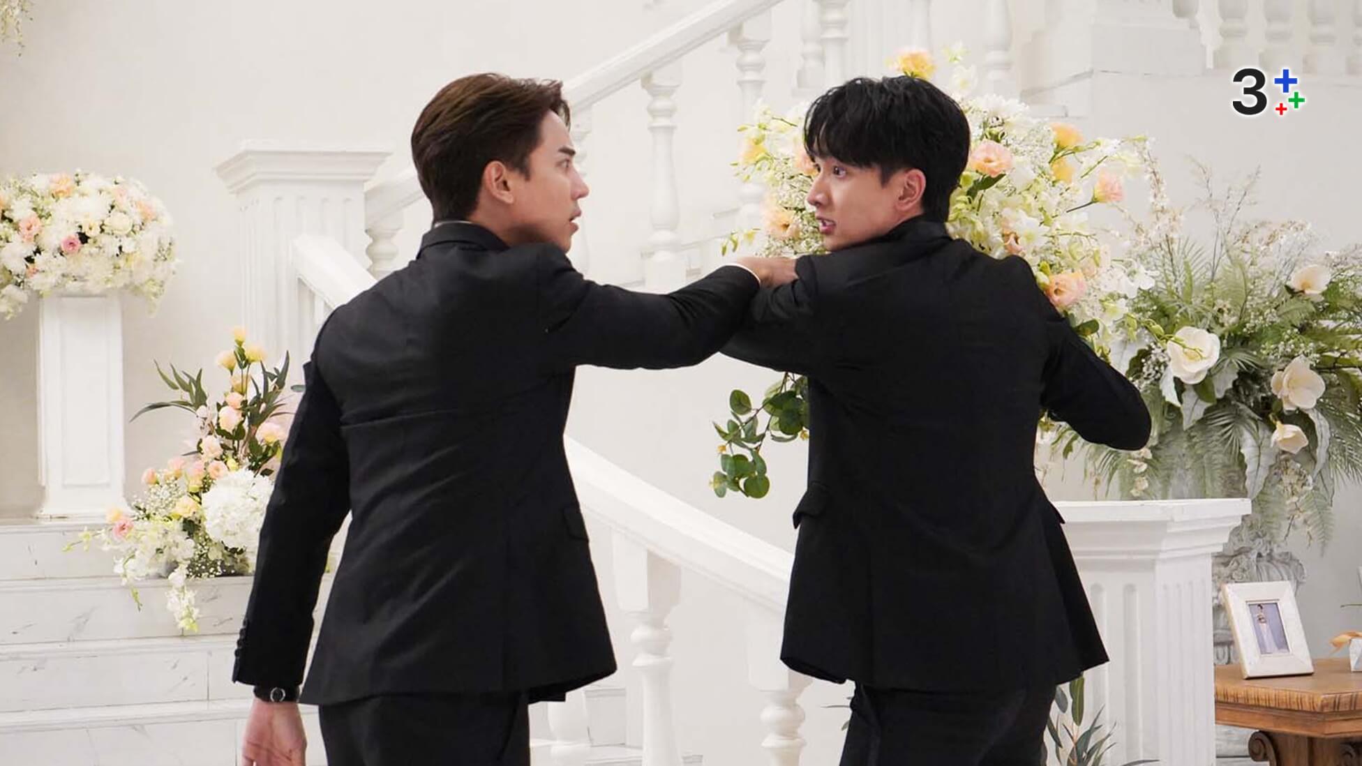 สำหรับเบื้องหลังสุดเดือดของการชกต่อยและความวุ่นวายเริ่มขึ้นเมื่อ ป๊อป พยายามเข้าห้ามปราม กองทัพ พีค จนเกิดการชกต่อยกันนัวเนีย งานนี้อารมณ์มาเต็มทุกฝ่าย ไม่ว่าจะเป็น กองทัพ พีค ที่ทุ่มสุดตัวถ่ายทอดความเจ็บปวดของลูกชายที่ถูกคนรักหักหลัง บุกเข้าไปอาละวาดและยื้อยุดกับทีมรักษาความปลอดภัยจนแทบตกบันได ด้านรุ่นใหญ่ฝีมือฉมัง แซม ก็ส่งพลังอำนาจผ่านสายตาและการโอบไหล่เจ้าสาวอย่างเหนือกว่า เพื่อประกาศความเป็นเจ้าของ ทำเอาบรรยากาศในกองถ่ายเงียบกริบด้วยความขนลุก ในขณะที่ แคร์ ก็รับบทหนักในการโชว์ซีนดราม่า ถ่ายทอดความรู้สึกผิดและสับสนผ่านหยดน้ำตาได้อย่างน่าสงสาร ทำให้ฉากนี้ออกมาดราม่าทั้งเบื้องหน้าและเบื้องหลังเข้มข้นสุดๆ แต่สุดท้ายความสัมพันธ์ที่แตกสลายในครั้งนี้จะกู้คืนมาได้หรือไม่? เมื่อความรักกลายเป็นความแค้น และความมั่นคงต้องแลกมาด้วยความเจ็บปวด ต้องไปติดตาม