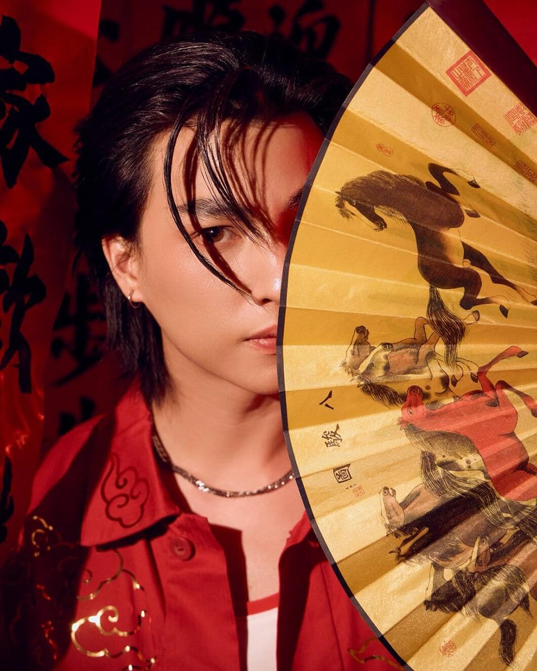 ด้วยความหนุ่มกลัฟเป็นสายแฟชั่นนิสต้าอยู่แล้ว มูทและกิมมิกในปีม้าไฟมหามงคลนี้จึงถูกนำเสนอในบริบทแฟชั่นร่วมสมัย เสื้อผ้าสีแดงมีลายเมฆทอง ผสมกับเสื้อขาวเรียบด้านใน สื่อถึงความสมดุลระหว่างความดั้งเดิมและความโมเดิร์น ผสมผสานแอ็กเซสเซอรี่อย่างพัดลายศิลป์จีน และพวงกุญแจรูปนักษัตร เพิ่มเลเยอร์ของสัญลักษณ์มงคล แบบเข้ากันเป็นที่สุด