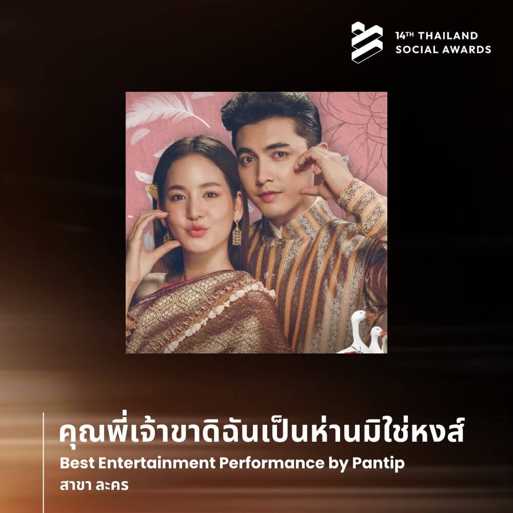 ทางด้านละครที่ถูกพูดถึงสนั่นโซเชียล “คุณพี่เจ้าขาดิฉันเป็นห่านมิใช่หงส์” ก็คว้า Best Entertainment Performance by Pantip สาขาละคร ซึ่งเป็นรางวัลสำหรับละครที่ได้รับความนิยมและมีการตั้งกระทู้พูดคุยมากที่สุดในปี 2025 บนเว็บไซต์ Pantip ฟากนางเอกสุดฮอตแห่งปี “ออม กรณ์นภัส” ได้รับรางวัล Best Entertainment Figures Performance on Social Media สาขา นักแสดงหญิง (Actress) เรียกว่าคู่ควรกับรางวัลที่สุด! ฝั่งภาพยนตร์สยองขวัญแห่งปี “ธี่หยด 3” ซึ่งเป็นผลงานความร่วมมือครั้งสำคัญระหว่างช่อง 3 และ M Studio คว้ารางวัล Best Content Performance On Social Media สาขา ภาพยนตร์ไทย (Movie) ไปครอง!
