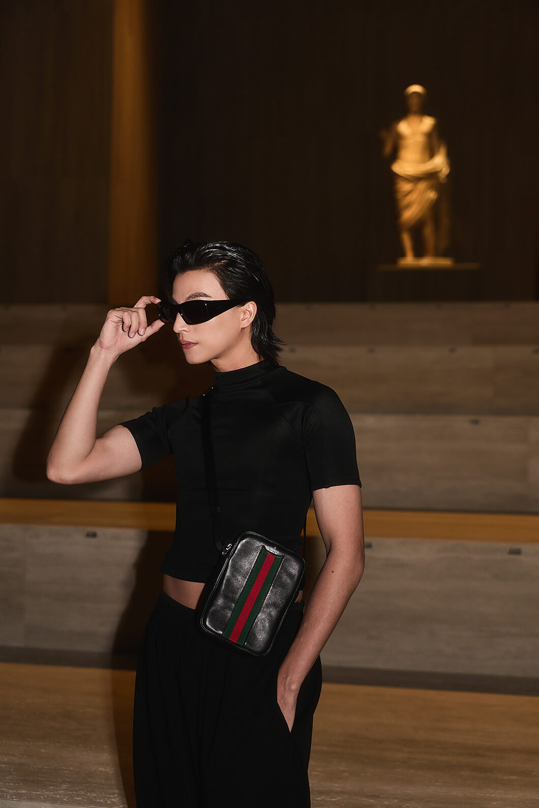 นอกจาก Brand Ambassador หนุ่มจากไทยอย่าง หนุ่มกลัฟ ครั้งนี้ยังมีซุปตาร์และแฟนชั่นไอคอนชื่อดังระดับโลก ไม่ว่าจะเป็น Demi Moore, Paris Hilton, Xiao Chan, Park Gyu Young, Lee Know แห่งวง Stray Kids, Jay Park, COCONA แห่งวง XG, Ningning แห่งวง Aespa ที่ร่วมชมโชว์แน่น Front Row และเฉลิมฉลองช่วงเวลาประวัติศาสตร์ของ Gucci ไปพร้อมกัน ท่ามกลางบรรยากาศที่ทั่วโลกจับตามอง แม้จะร่วมเฟรมกับเซเลบคนดังแต่การปรากฏตัวของหนุ่มกลัฟไม่มีดรอป เท่สะเทือนมิลาน เรียกแสงแฟลชและได้รับความสนใจจากผู้เข้าร่วมงานรวมถึงสื่อมวลชนเป็นอย่างมาก ฮอตสมตำแหน่ง Gucci Brand Ambassador หนึ่งเดียวจากประเทศไทย จริง ๆ