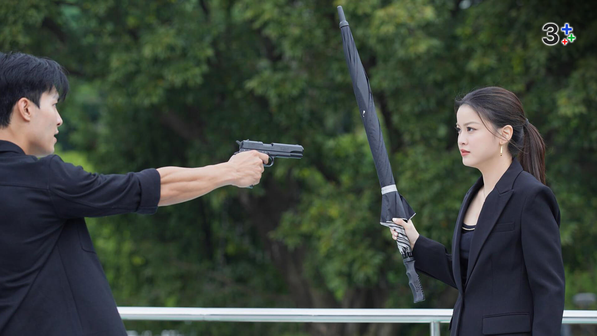 แต่จังหวะพีคก็มาถึง เมื่อ ลิลิน ตัดสินใจลงพื้นที่เองแบบไม่ลังเล เดินหน้าฝ่าความเสี่ยงเข้าไปช่วยคนรักแบบไม่สนใจใครทั้งนั้น สะท้อนความเป็นผู้นำที่ทั้งเด็ดขาดและกล้าหาญ จนกลายเป็นอีกหนึ่งฉากที่แฟน ๆ ต่างพูดถึงหนักมาก ไฮไลต์สำคัญของซีนนี้อยู่ที่สาวแทนที่พลิกคาแรกเตอร์จากลุคซีอีโอสุดเนี้ยบ กลายเป็นโหมดแอ็กชันเต็มตัว คว้าร่มมาเป็นอาวุธจำเป็น ออกโรงปะทะกับคนร้ายเพื่อปกป้องญดาอย่างสุดกำลัง