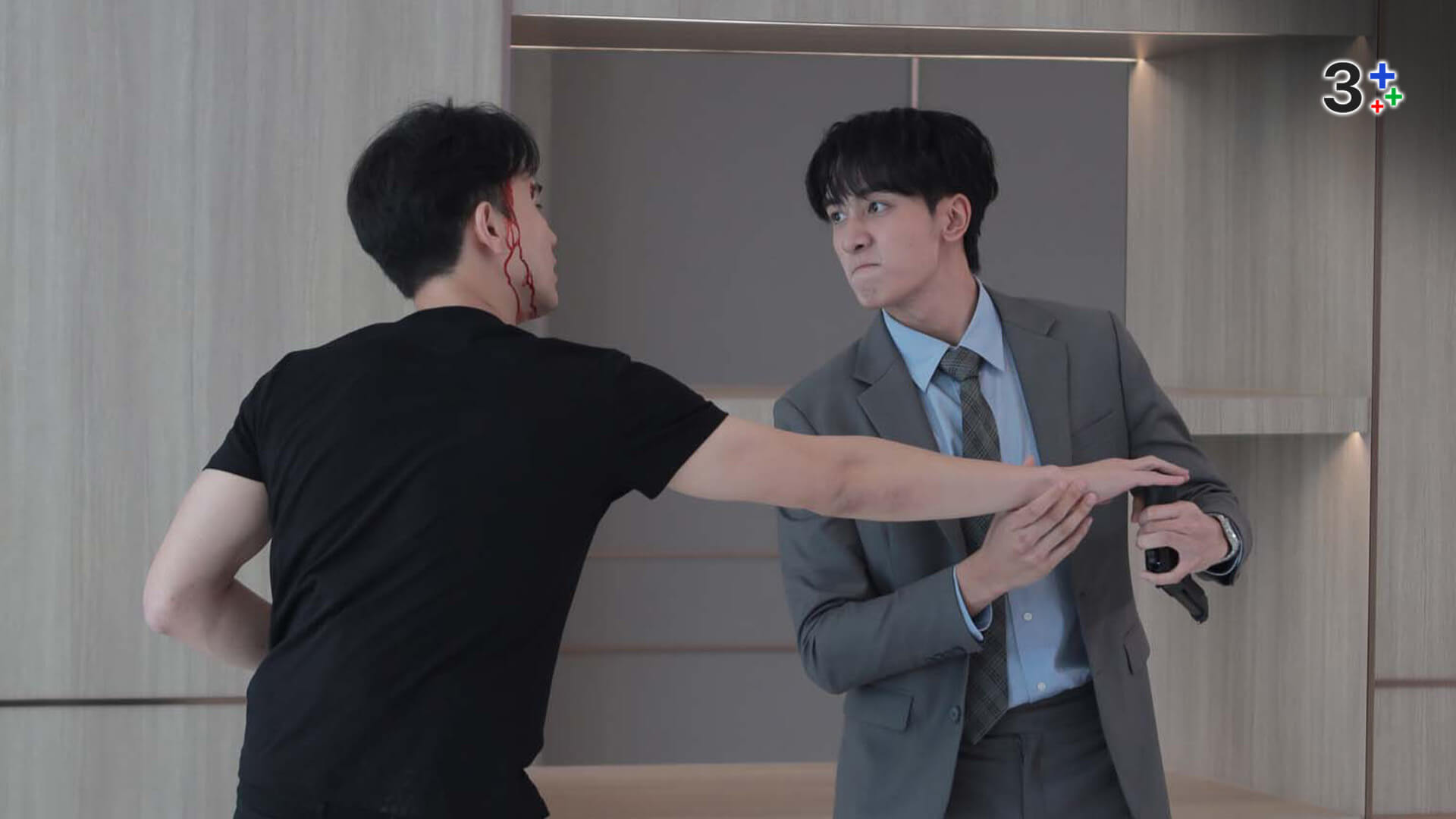 โดยฉากนี้เป็นตอนที่ รุจน์ (แม็ค ปวิช) เดินเกมกดดันขั้นสุด จับ ผักบุ้ง (เก๋ไก๋ ณัฐธิชา) และ ดาริณ (แคร์ ฉัตรฑริกา) เป็นตัวประกัน ท่ามกลางบรรยากาศการเผชิญหน้าที่พร้อมปะทุ งานนี้ทำเอาสองหนุ่มฮีโร่อย่าง ตรัย (กองทัพ พีค) และ ราเชนทร์ (ป๊อป ฐากูร) นิ่งเฉยไม่ได้ ต้องรีบพุ่งตัวเข้าขัดขวางจนเกิดการปะทะกันอย่างดุเดือด!