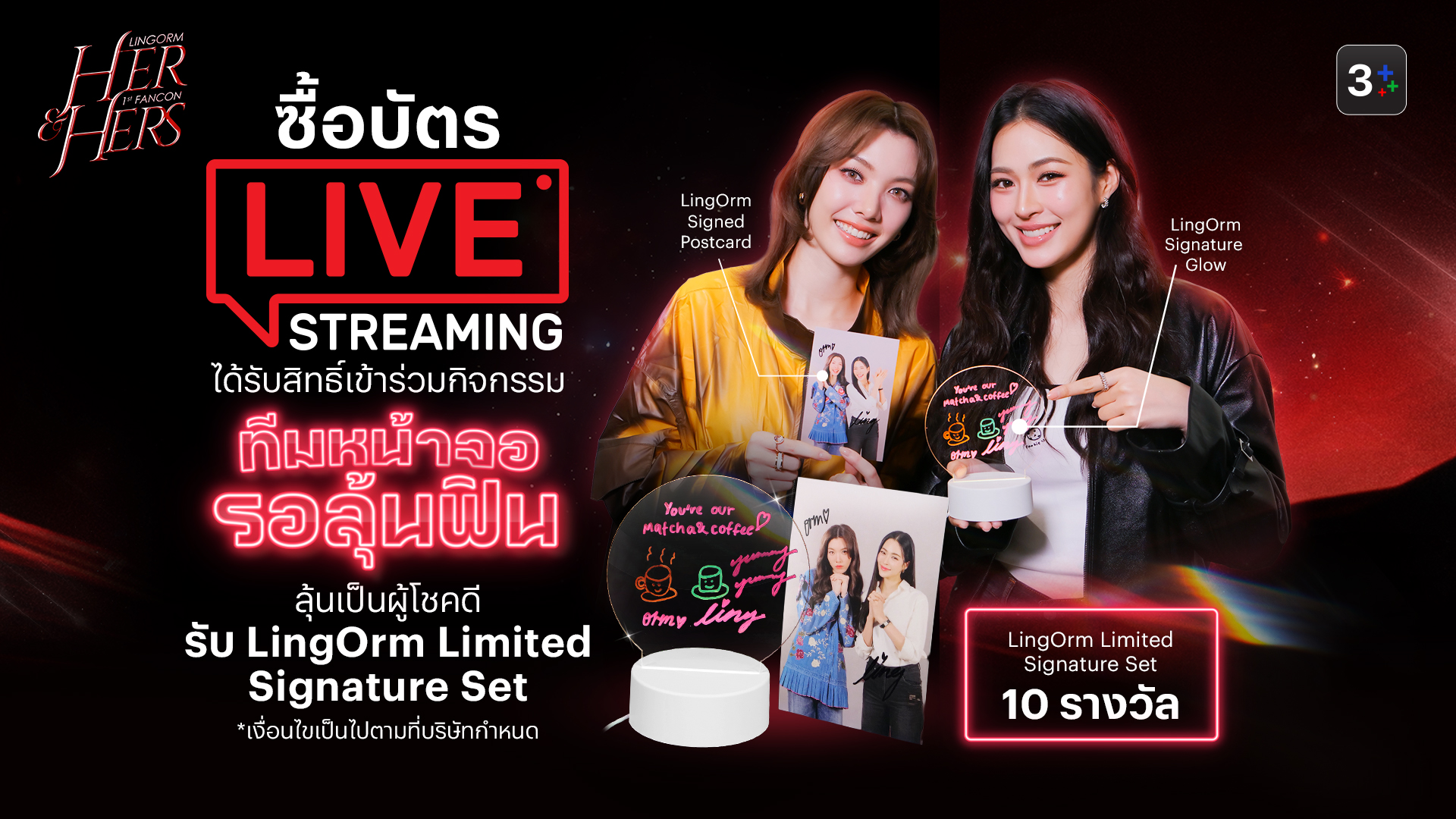 Purchase a Live Streaming ticket for HER & HERS LINGORM 1st FANCON. Get a chance to join an exclusive activity and win 1 of 10 special acrylic lamps designed, decorated, and signed by “Ling & Orm” ✨
