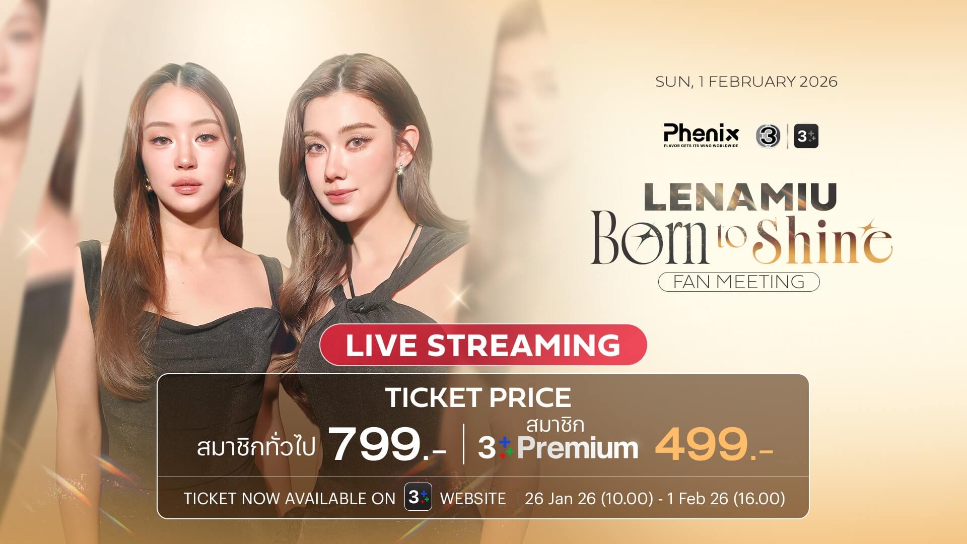 ร่วมสัมผัสแฟนมีตติ้งครั้งแรกของ ลีน่า ลลินา & หมิว ณัชชา จาก รักสุดท้าย My Safe Zone The Series ในงาน “LENAMIU Born to Shine Fan Meeting” ถ่ายความอบอุ่น รอยยิ้ม และโมเมนต์สุดพิเศษ ผ่าน Live Streaming อยู่ที่ไหนก็ฟินได้ เหมือนนั่งหน้าเวทีจริง