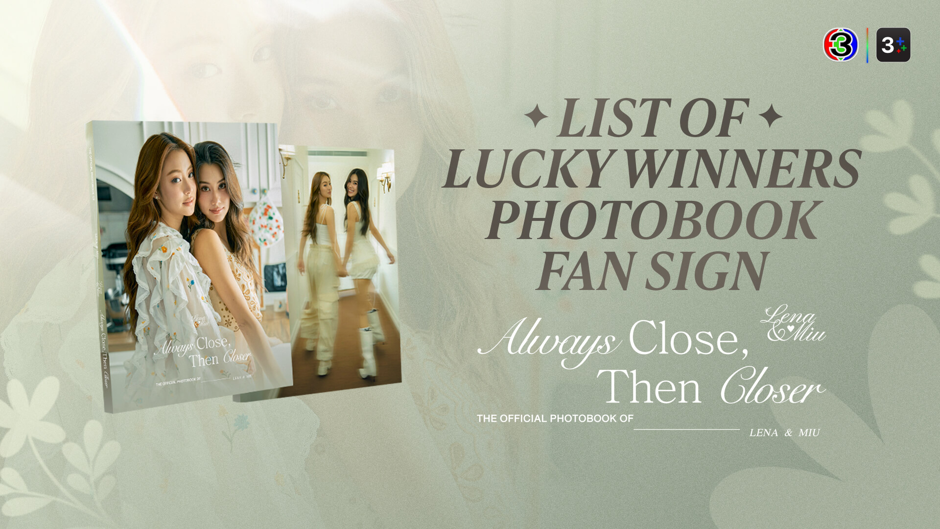 ประกาศรายชื่อผู้โชคดีได้เข้าร่วมกิจกรรม LENA & MIU Always Close, Then Closer Photobook Fan sign