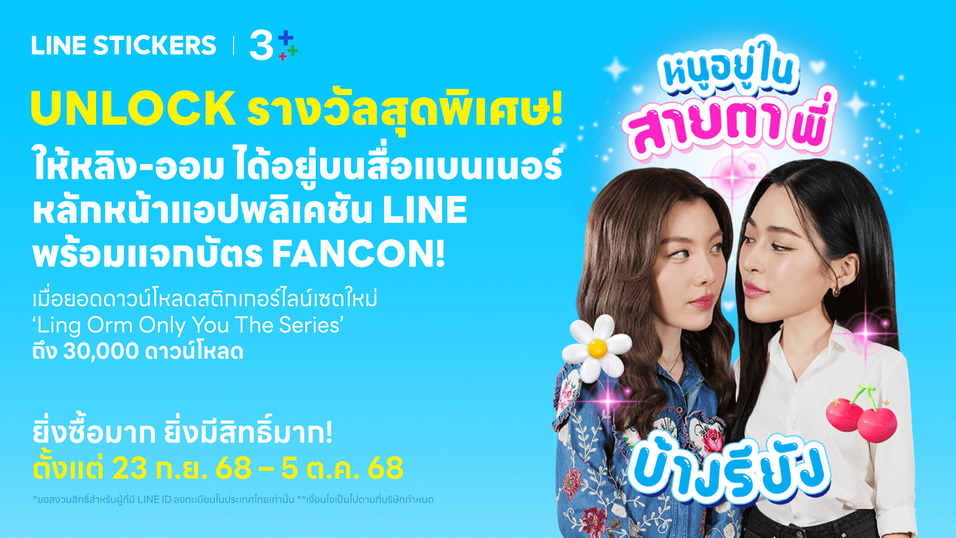 UNLOCK รางวัลสุดพิเศษ! 🤩 ให้หลิง-ออม ได้อยู่บนสื่อแบนเนอร์หลักหน้าแอปพลิเคชัน LINE พร้อมลุ้นรับบัตร FANCON หลิง–ออม และรางวัลอื่นๆ