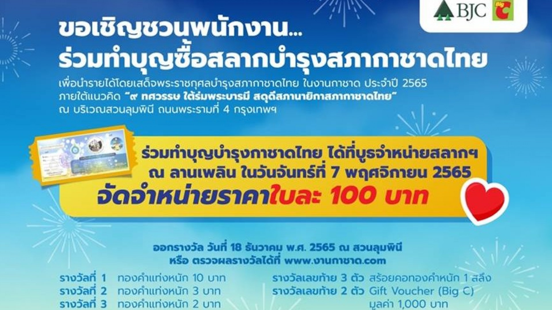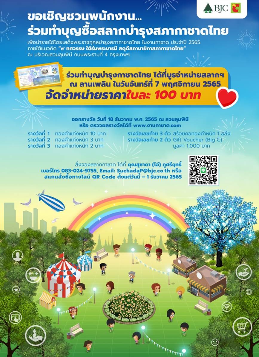 ขอเชิญชวนพนักงานร่วมทำบุญซื้อสลากบำรุงสภากาชาดไทย เพื่อนำรายได้โดยเสด็จพระราชกุศลบำรุงสภากาชาดไทย