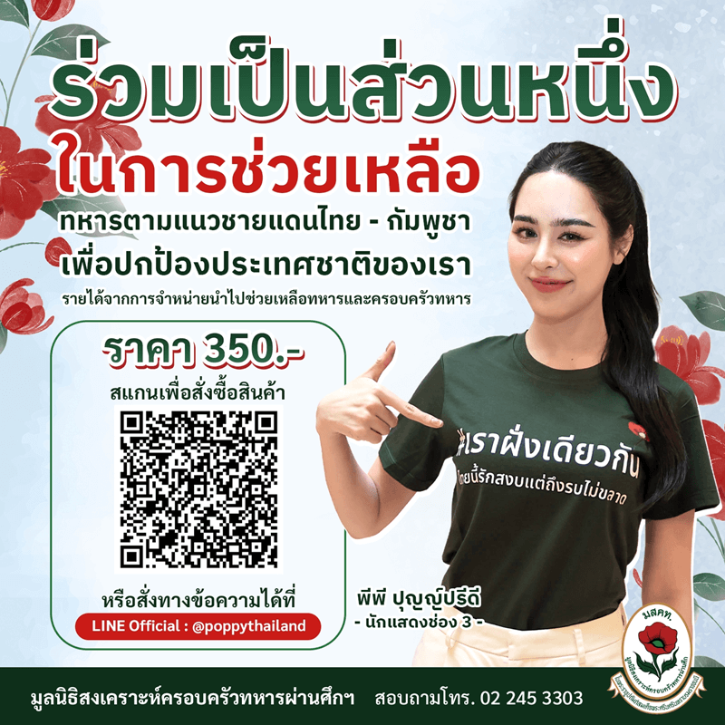 #เราฝั่งเดียวกัน #poppythailand #มูลนิธิสงเคราะห์ครอบครัวทหารผ่านศึก #เก้าพีพี #เก้านพเก้า #พีพีปุญญ์ปรีดี #ช่อง3