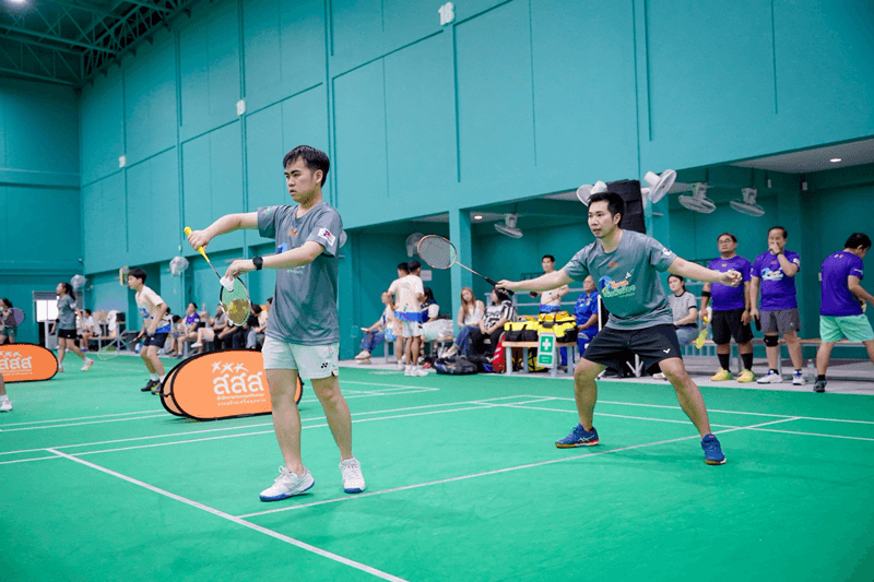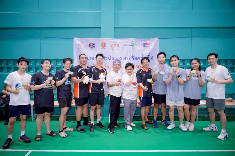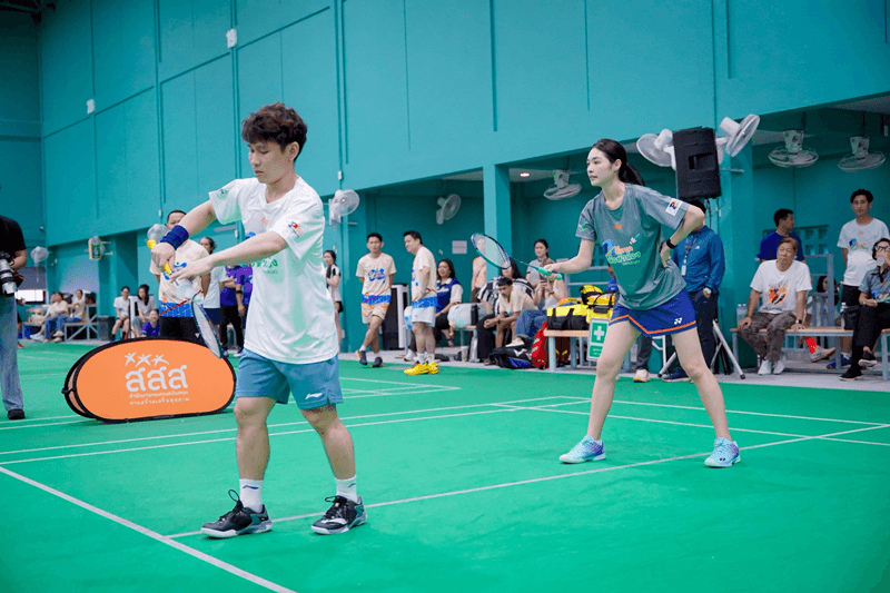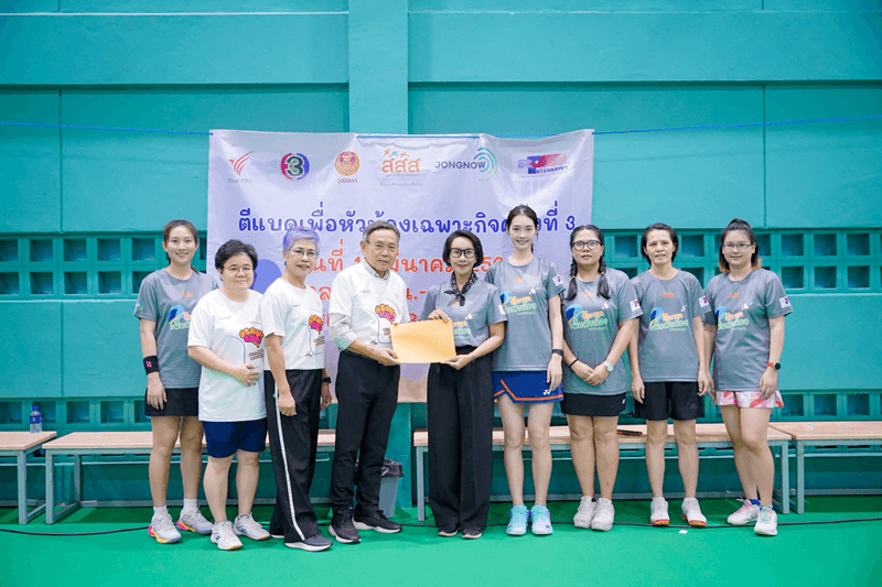 นายแพทย์พงศ์เทพ วงศ์วัชรไพบูลย์ ผู้จัดการกองทุนสนับสนุนการสร้างเสริมสุขภาพ (สสส.) พร้อมภาคีเครือข่าย รวมทั้งในส่วนของสถานีโทรทัศน์ไทยทีวีสีช่อง 3 โดยคุณปริศนา กล่ำพินิจ AVP กิจการองค์กร เป็นผู้แทนสถานีฯ ร่วมสมทบทุนกิจกรรมการกุศลในครั้งนี้ นำทีมพนักงาน และนักแสดงสายสปอร์ต มิ้นท์ รัญชน์รวี เอื้อกูลวราวัตร - มาริลิน เคท การ์ดเนอร์ - แฟรงกี้ วีรภัฎ อ่อนสอาด ร่วมด้วย เฟิร์ส ฉลองรัฐ นอบสำโรง - ไฮด์ ศรุญสธร ธนวัชรวัฒน์ ลงแข่งขันแบดมินตันกับทีมผู้ร่วมรายการ ทั้งในส่วนของนักกีฬาดาวรุ่งระดับเยาวชนจากโรงเรียนกีฬาบ้านทองหยอดอย่าง น้องส้ม สรัลรักษ์ วิทิตศานต์ แชมป์เยาวชนโลกปี 2567 ฯลฯ รวมพลังสร้างสีสัน และส่งเสริมการออกกำลังกายไปพร้อมกับภารกิจสนับสนุนการจัดทำธนาคารหมวกกันน็อก สมทบทุน "กองทุนหมวกกันน็อกเพื่อหัวน้อง" ของมูลนิธิเพื่อความปลอดภัยทางถนนต่อไป