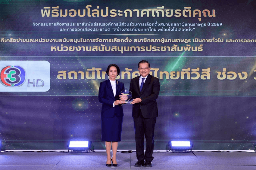 ช่อง 3 รับรางวัล เชิดชูเกียรติ ผู้สนับสนุนการจัดการเลือกตั้ง ปี 2569
