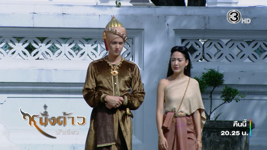 หนึ่งด้าวฟ้าเดียว บทเรียนที่ผ่านมาของวันคืนที่สูญเสีย มันจะต้องไม่หวนกลับมาอีก เราทุกคนที่ผ่านวันเวลาทุกข์ยากของแผ่นดินมาถึงยามนี้ เหมือนได้รับชีวิตใหม่ ภายใต้ท้องฟ้าผืนเดียวกัน เรื่องราวในรัชสมัยของพระเจ้าเอกทัศน์แห่งกรุงศรีอยุธยา แมงเม่า (รับบทโดย แต้ว ณฐพร) ลูกสาวของเศรษฐี มิ่ง เจ้าของโรงกระดาษ ขึ้นชื่อเรื่องความแก่นแก้ว ซุกซน จนเป็นที่เลื่องลือไปทั่ว โดยเฉพาะเรื่องการหนีงานดูตัวครั้งแล้วครั้งเล่า และในครั้งนี้ แมงเม่าก็หนีการดูตัวอีก จนมาเจอกับ “สิขันทิน” (รับบทโดย เจมส์ จิรายุ) ขันทีรูปงามแห่งวังหลวงชาวโต้ระกี่ (ตุรกี) สิขันทินไม่ชอบที่แมงเม่าซุกซน จนก่อความวุ่นวายไปทั่ว ส่วนแมงเม่าก็หมั่นไส้สิขันทินที่ชอบทำเป็นสั่งสอนตน เลยแกล้งกวนประสาทเอาบ่อย ๆ โดยที่แมงเม่าไม่รู้เลยว่าสิขันทินคือ ขันทอง บุตรชายของ เสือขุนทอง จอมโจรผู้โด่งดังที่เสียชีวิตไปแล้ว โดยขันทองปลอมตัวมาเป็นขันที ก็เพื่อสืบความจริงเรื่องการตายของพ่อกับแม่นั่นเอง